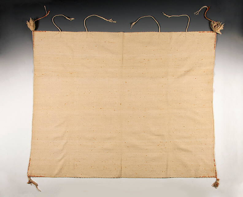Label TextHopi women receive two white cotton mantas when they marry. During the wedding the bride wears one and holds the other, along with the white wedding sash, in a rolled bundle. The bride keeps one manta to accompany her in death. She uses the other as she pleases and often richly embroiders it. The application of fine white clay enhanced the whiteness of the garment.Exhibition History