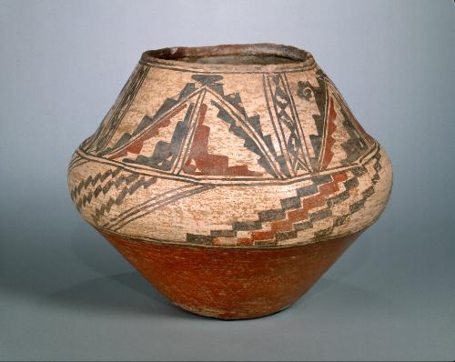 Label TextThis Zuni jar is typical of the fine ceramic work done for centuries at that pueblo. The painted image of the deer is notable for its traditional red heart-line, extending from the mouth to the chest. The heart-line symbolically represents the spiritual essence of the deer.Exhibition History"Art of the American Indian: The Thaw Collection," The Cleveland Museum of Art, Cleveland, OH, March 2, 2010 - May 30, 2010; Minneapolis Museum of Art, Minneapolis, MN, October 24, 2010 - January 9, 2011; Dallas Museum of Art, Dallas, TX, April 24, 2011 - September 23, 2011; Indianapolis Museum of Art, Indianapolis, IN, December 4, 2011 - February 12, 2012.
