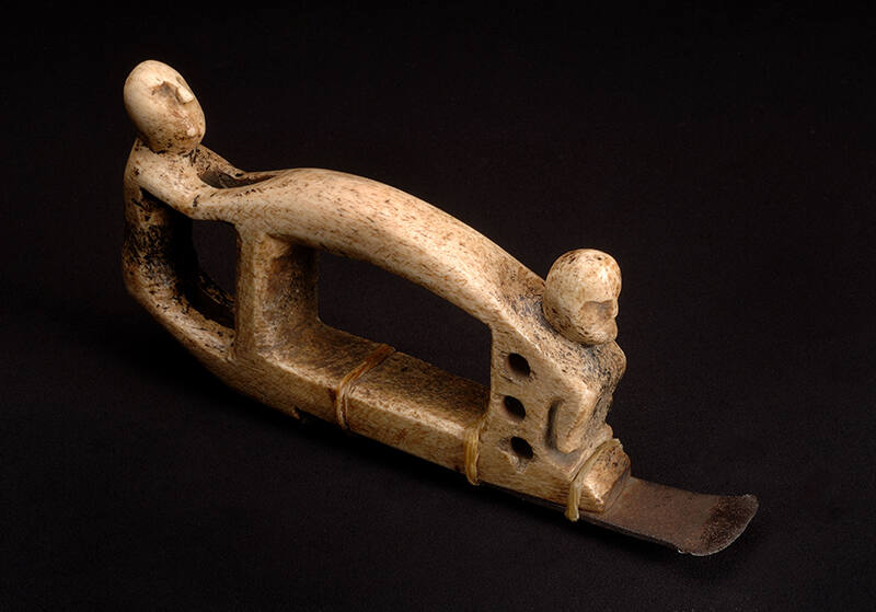 Label TextThe adze, one of the tools that allowed Quinault artists to perfect their carving skills, sometimes became an art form itself. Here, two human figures bracket the grip on either side of the carver’s hand, guiding his movements across the surface of the wood.ProvenanceJonathan Holstein, Cazenovia, New York