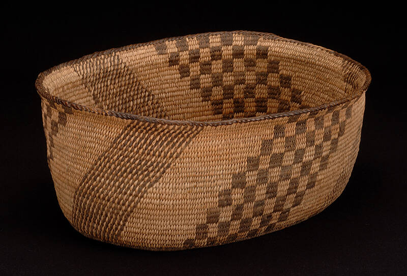 Label TextBasketmakers use black devil’s claw as a decorative material to contrast the light brown background of the willow. Here, the weaver has used a diagonal orientation of lines and stepped squares to convey a sense of energy.ProvenanceRowena Martinez, El Rincon Trading Post, Taos, New Mexico