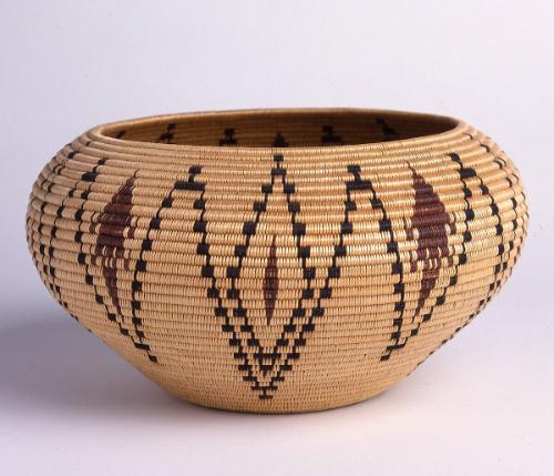 Native women artists transformed local grasses, reeds, rushes, roots and stems into beautifully wrought art baskets for an appreciative American clientele. Women created baskets that were valued for their fineness of stitch and tightness of weaving combined with a skillful execution of design. Enthusiastic collectors influenced by the aesthetic vision of the Arts and Crafts Movement which advocated an aesthetic based upon the integrity of natural materials and the dedicated work of an individual fueled and support the work of the native artists. They in turn elaborated an ancient skill, perfecting technique, scale and design. Exceptional art baskets are distinguished by the fineness of strand size, the tightness of the weave, the exactness of the stitch and the aesthetic refinement of design. ProvenanceClaire Zeisler, Chicago, Illinois; Morning Star Gallery, Santa Fe, New Mexico