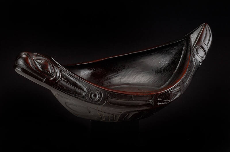 Label TextHaida artists produced bowls and other containers that exemplified an ancient tradition of creating fine work for important social occasions and feasts. The form of a seal was a well-known interpretation in the carving of bowls that held such delicacies as seal oil, as well as oolachen, or candlefish oil.ProvenanceGeorge Terasaki, New York City