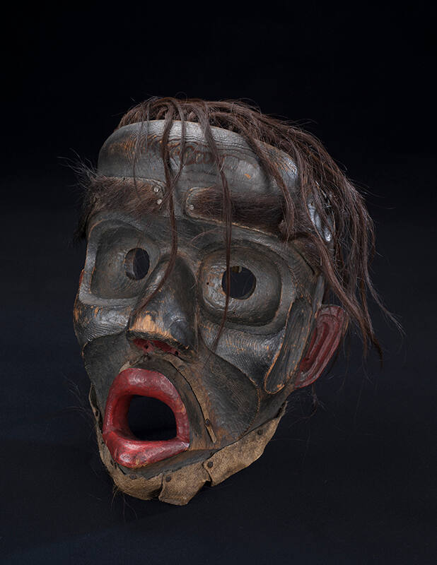 Label TextIn dramatic dance performances Dzunukwa is a powerful ancient woman who can bring wealth, but also steals and eats children. Often, as here, she is represented with a heavy brow, arched nose, sunken eyes and pursed lips. Her fearsome reputation is used to induce good behavior in children. She is also associated with important origin myths.Exhibition History"Art Des Indiens D'Amerique Du Nord Dans La Collection D'Eugene Thaw," Mona Bismarck Foundation, Paris, France, Somogy Editions D'Art, January 21, 2000 - March 18, 2000.