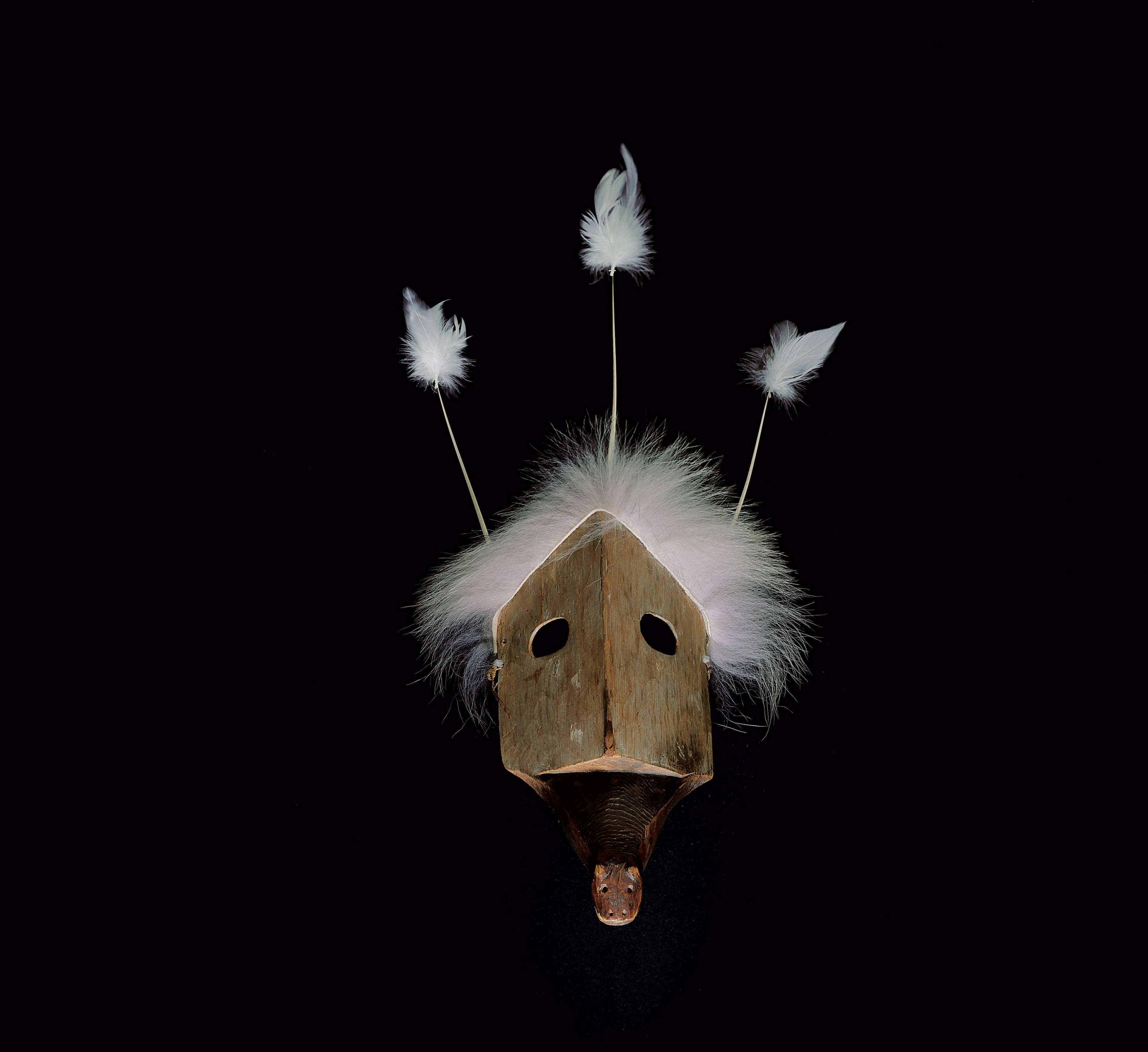 Label TextThis oval shape of the eye on this mask is associated with the oval entryway in the floor of the Central Yup’ik men’s meeting house. The flat surface surrounding the eye therefore relates to the floor of the meeting hall where dances are performed. The animal image at the base could possibly represent a sea otter.ProvenanceF. Rolin and Co., Inc., New York City; Andre Nasser, New York City
