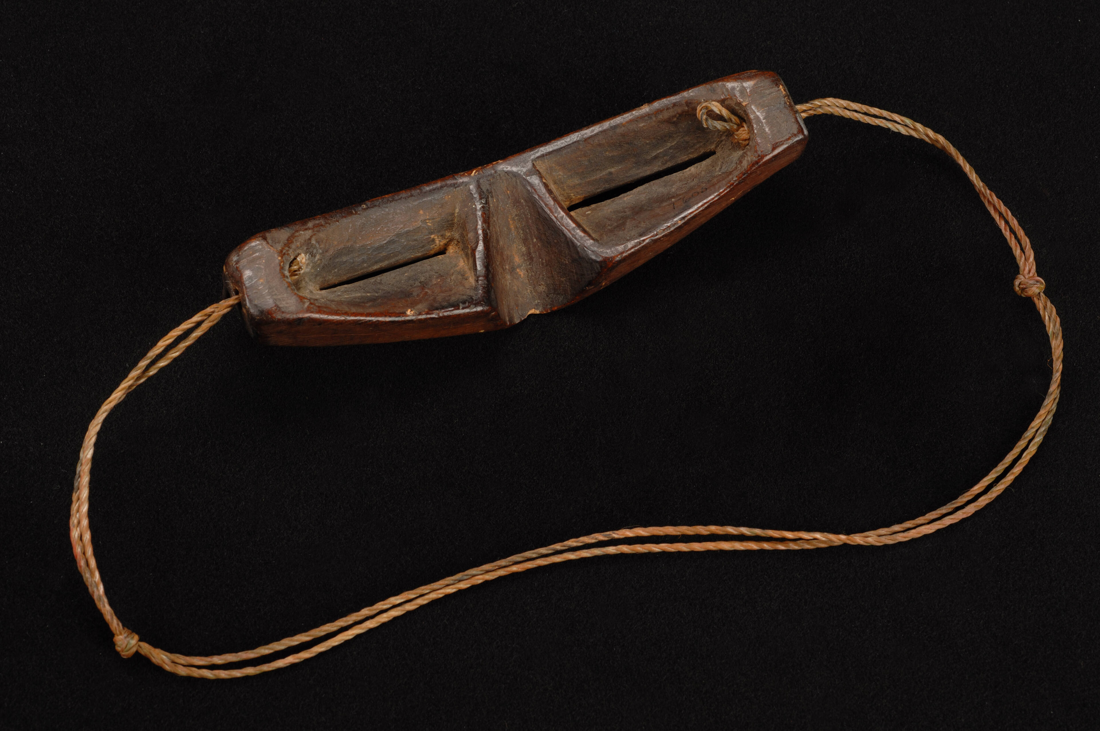 Label TextSnow goggles with narrow slits were worn to shield the wearer’s eyes from the snow’s glare, the reflection of light on water, blowing snow, and brilliantly sunny days. Some goggles such as these have visors to provide additional shading. Their angular shape and flat unadorned surface give them a stark, mask-like appearance.Exhibition History"Art of the American Indian: The Thaw Collection," The Cleveland Museum of Art, Cleveland, OH, March 2, 2010 - May 30, 2010; Minneapolis Museum of Art, Minneapolis, MN, October 24, 2010 - January 9, 2011; Dallas Museum of Art, Dallas, TX, April 24, 2011 - September 23, 2011; Indianapolis Museum of Art, Indianapolis, IN, December 4, 2011 - February 12, 2012.