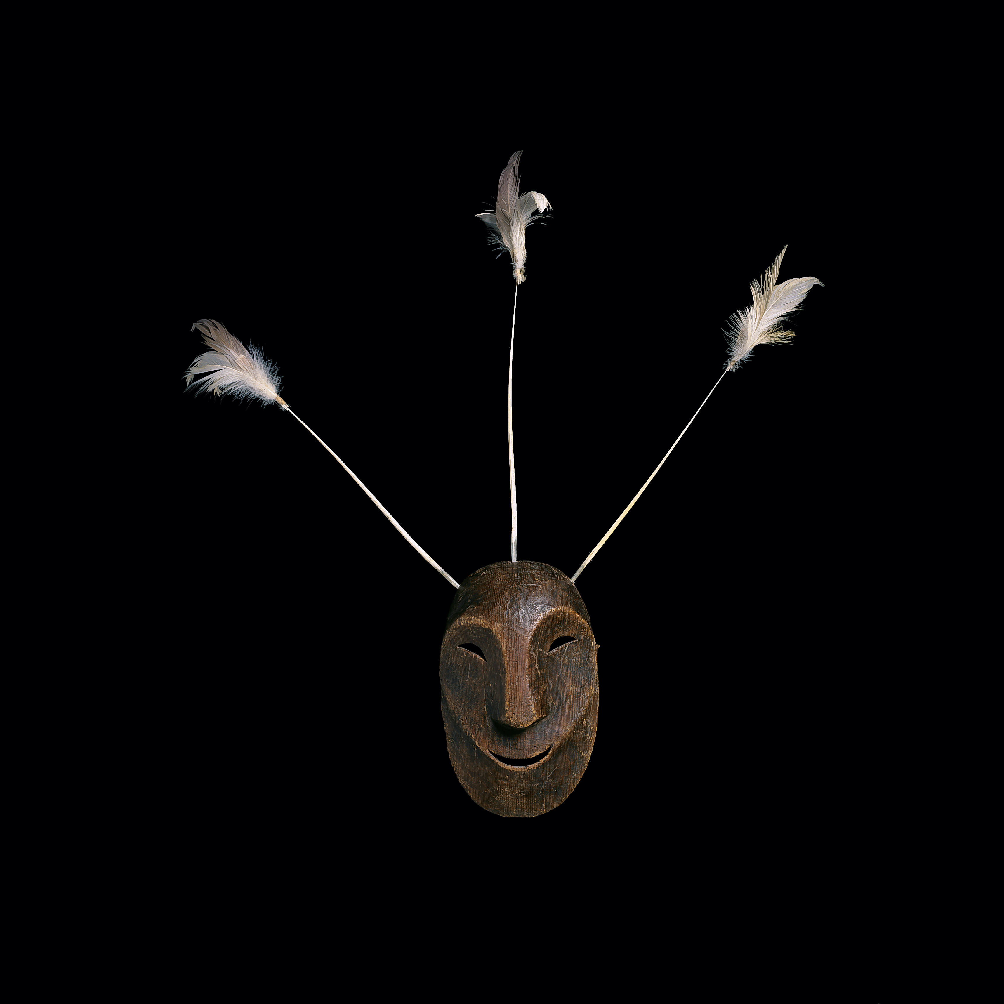 Label TextCertain patterns of numbers are important in Central Yup’ik cosmology. The three swan feathers at the top of this mask relate to such a sequence. The number four and seven are also repeatedly featured in the display of feathers and tufts of hair that detail both masks and finger masks.ProvenanceChester Dentan, Santa Fe, New Mexico; Morning Star Gallery, Santa Fe, New Mexico