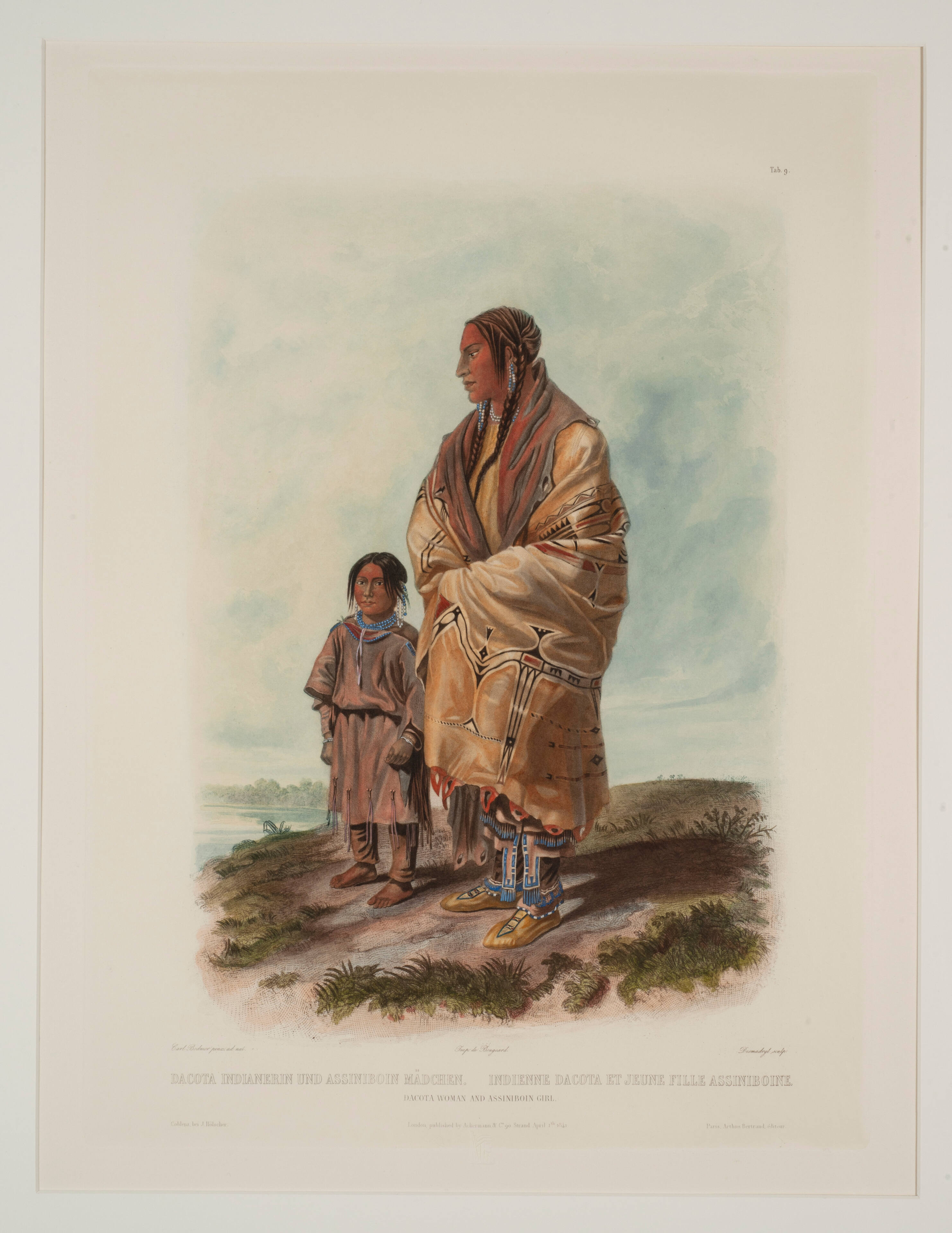 Label TextBetween 1832 and 1834 Prince Maximilian of Wied-Neuwied (a German province) traveled to the interior of North America. The artist Karl Bodmer accompanied him and sketched the land and the people as they traveled. The resulting prints were made from original etched plates and then colored with watercolors. They capture the beauty and drama of Plains Indian regalia in use.ProvenanceElecto Historical Editions. London, England in association with Joslyn Art Museum, Omaha, Nebraska