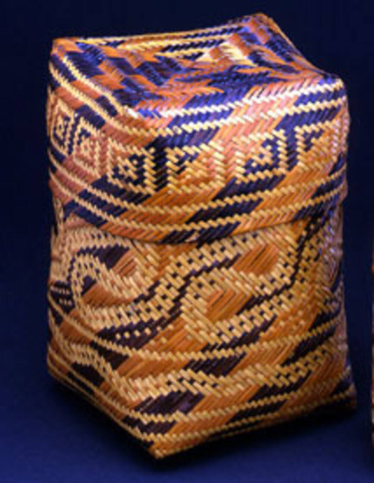 Label TextThis basket is a fine example of Chitimacha basketmaking. The Chitimacha use river cane from the banks of the Mississippi River and natural dyes from black walnut husks and blood root plants to create the brown and burnt-red surfaces. Some basketmakers weave flowing, curvilinear lines in their work.ProvenanceLucy H. Morrow; 49 Steps Gallery, Los Angeles, California; Sotheby's, New York City
