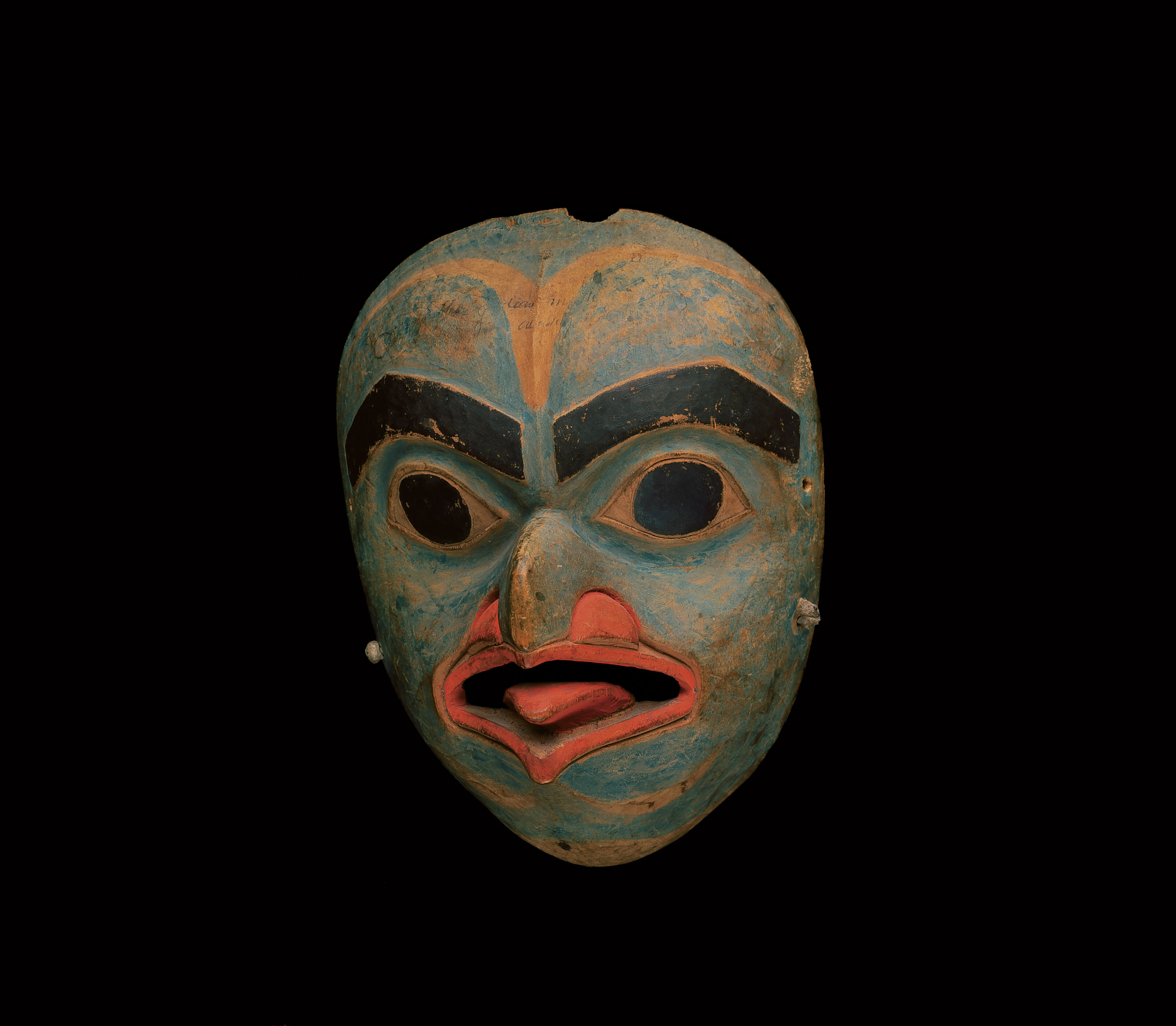 Label TextA great variety of spirit beings are depicted in the masks of Tlingit shamans. Each mask, worn only briefly during healing rituals, had a special facility that the shaman could call upon. The image on this mask appears to represent an eagle spirit. The open beak and extended tongue recall images from raven rattles and other symbols of spiritual contact and the passing of esoteric knowledge.Exhibition History"Art Des Indiens D'Amerique Du Nord Dans La Collection D'Eugene Thaw," Mona Bismarck Foundation, Paris, France, Somogy Editions D'Art, January 21, 2000 - March 18, 2000.