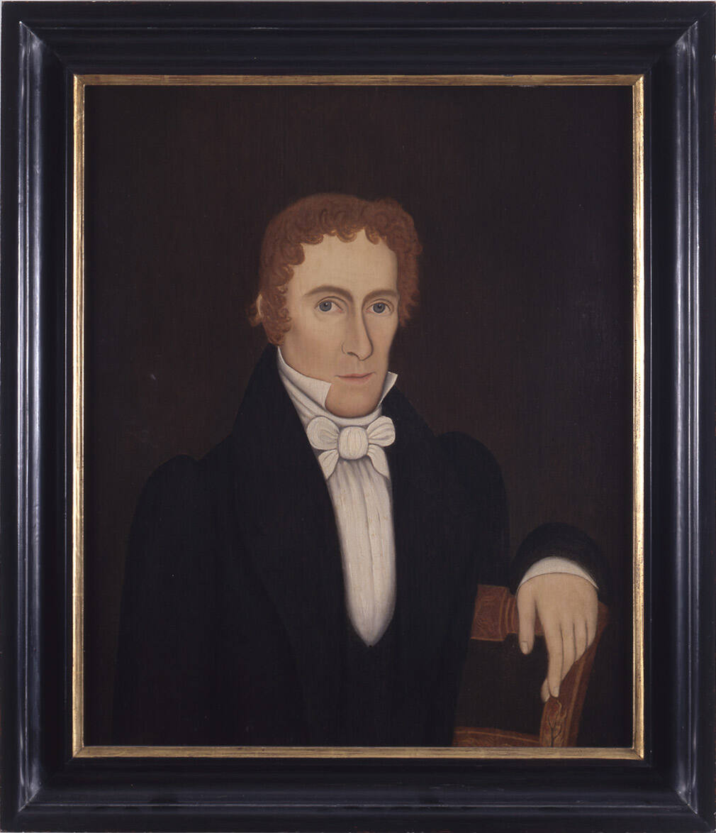 Label TextAbijah Stoddard was born in Hartford, New York in 1789 and died in Milwaukee, Wisconsin in 1861. His second wife is shown in this accompanying portrait. Abijah served with Noah North’s father as a surgeon in 1818 in the 99th regiment of infantry in the New York State militia. He was the pioneer medical man of Pembroke, New York from 1811 until 1854, when he moved to Wisconsin. North was born in Connecticut and settled in the Batavia, New York area in 1808. Evidence suggests that North lived with Milton W. Hopkins’ family in Albion and studied portrait painting with him in the early 1830s. In 1836 he followed Hopkins to Ohio where new markets were flourishing as a result of the waterways connecting them to New York.On View