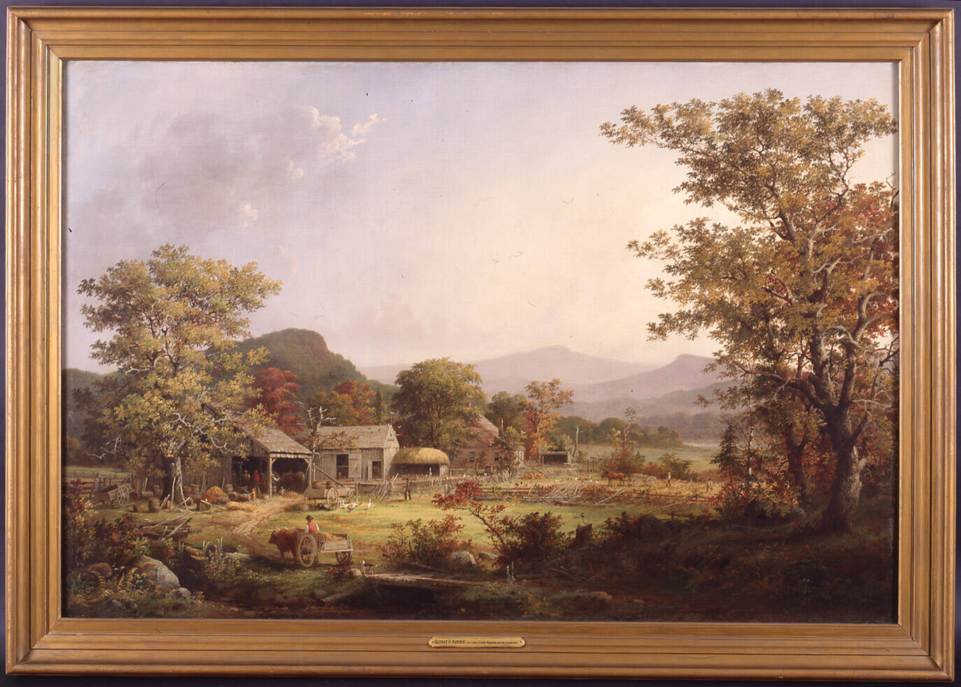 Label TextCider making was common among farmers in 19th-century New York because it provided hard cider and vinegar for home consumption and barter. Following the Civil War, the demand for farm-made hard cider diminished as a result of temperance and inexpensive distilled liquor. In this painting, George Henry Durrie captures a nostalgic scene of a traditional chore throughout the rural northeast, but one that was beginning to disappear.