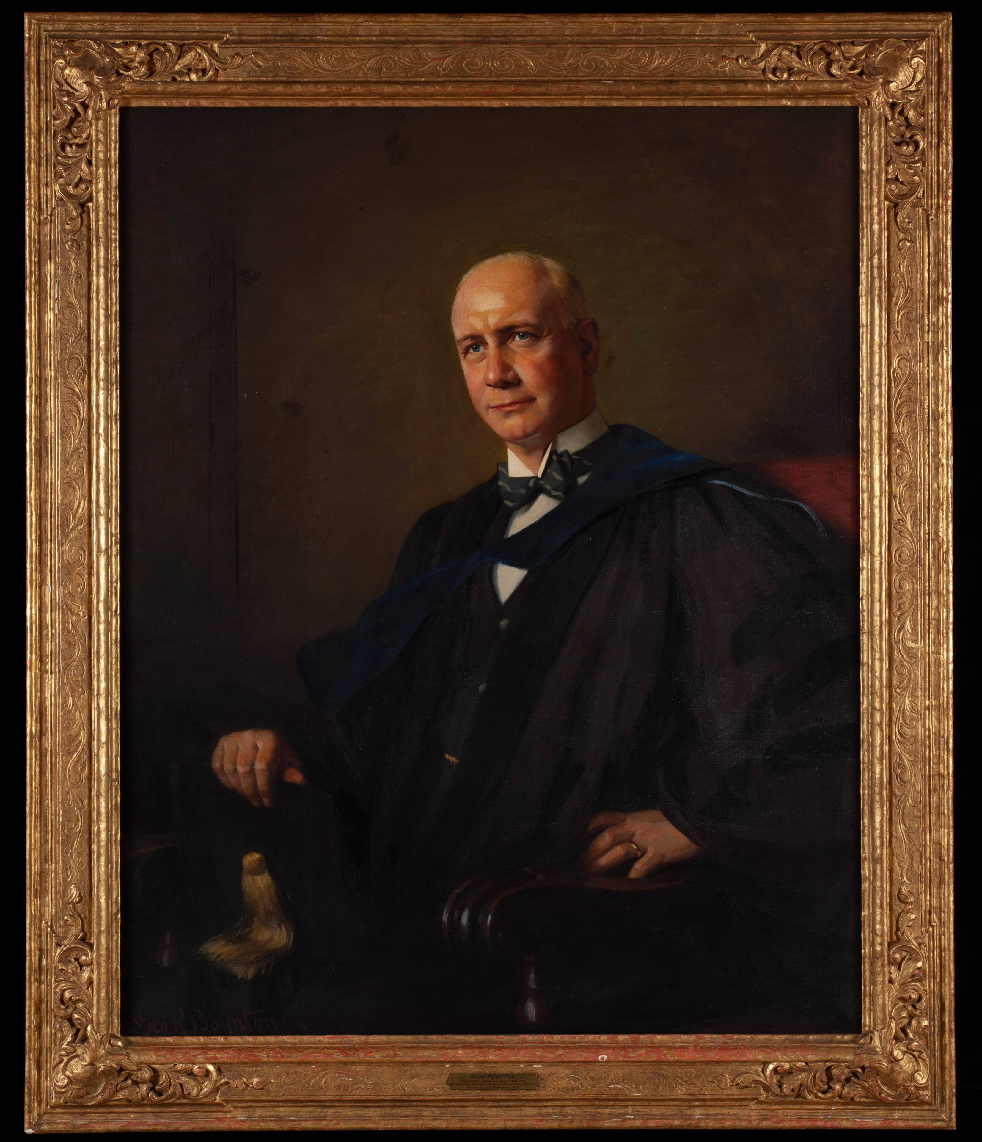 Label TextGeorge Rufus Boynton, portrait painter, known as "the painter laureate of Army and Navy life," was born in Pleasant Grove Wisconsin at the age of 17 he came to New York and supported himself as a sketch artist, studying art at Cooper Union. He also studied at the National Academy of Design and the Art Students League under Walter Shirlaw, C. Y. Turner and J. G. Brown. Dixon Ryan Fox (1887 – 1945), depicted here, was an American educator, researcher and the president of Union College from 1934 – 1945.