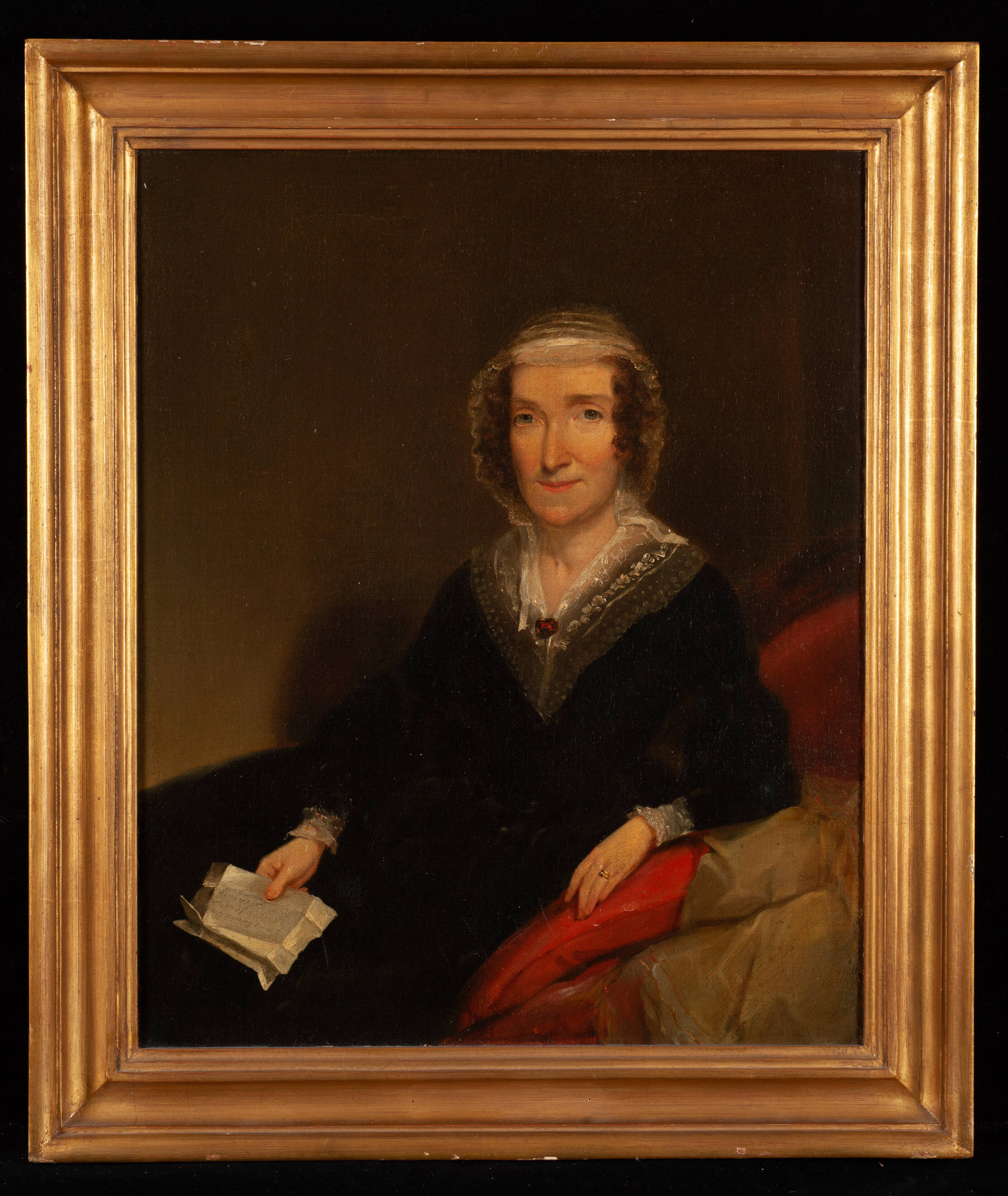 Label TextMadame Jumel (1769-1865) was the widow of a wealthy New York City wine merchant. Their country manor house still stands in the Washington Heights section of New York City and is a public museum. Jumel's background is obscure and she was considered an adventuress. In 1833 she married Aaron Burr (she was his second wife). They were later divorced after much litigation.On View