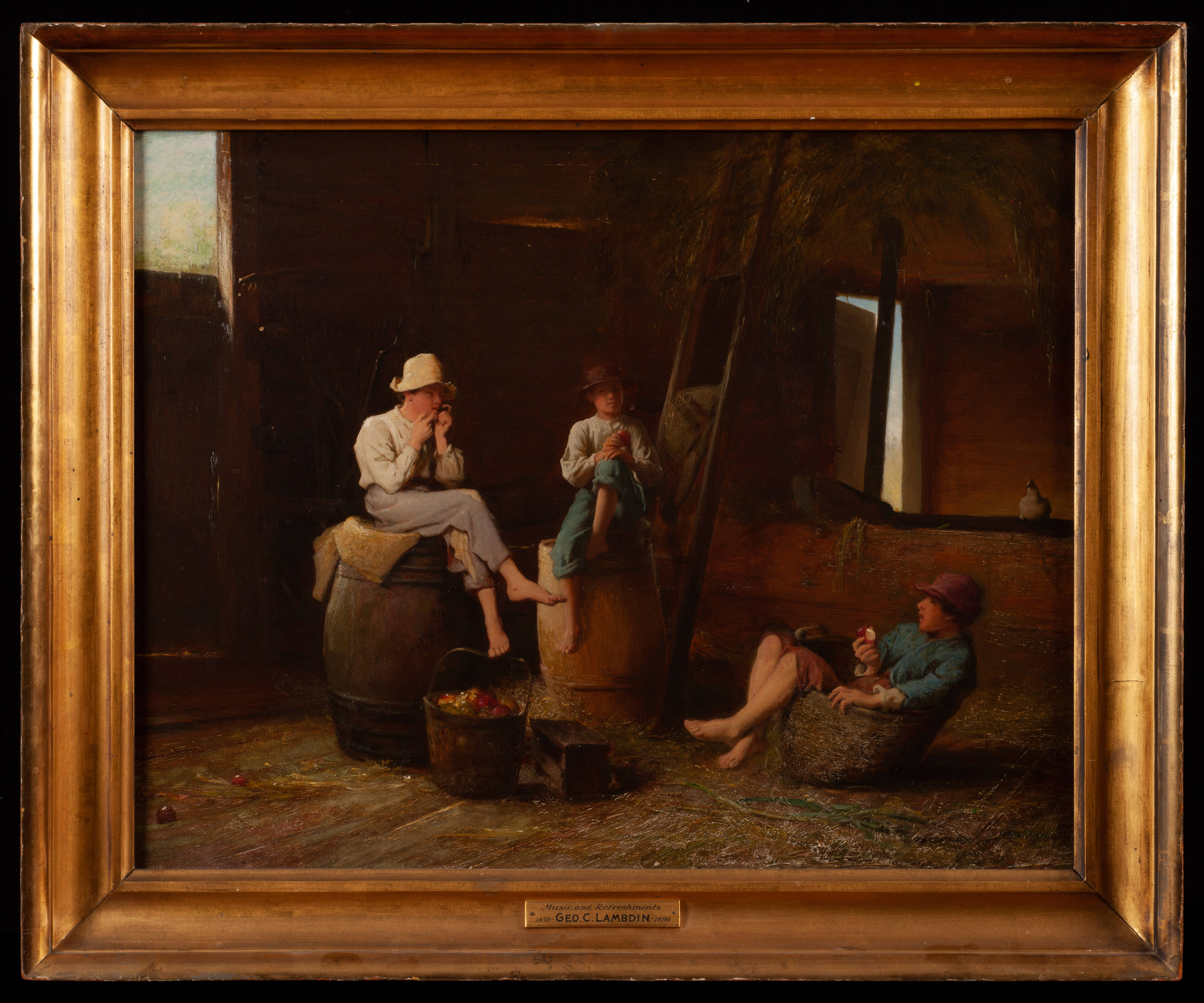 Label TextLambdin, a great favorite in his own day, pleased Victorian audiences with the diversity of his subject matter. His work included studies of young women, Civil War subjects, and still life paintings in addition to genre. As a sentimental painter, Lambdin's genre scenes were anecdotal but included few expressive gestures. Music and Refreshments is one such example where mood substitutes for action. Lambdin described his artistic inclination toward those things refined and delicate by stating, “An object is picturesque when it is beautiful.”BibliographyWeidner, Ruth Irwin, George Cochran Lambdin ( exh. cat. Chadds Ford, PN: Brandywine River Museum, 1986), p. 8, cat. no. 32, ill.