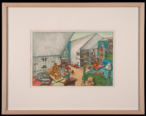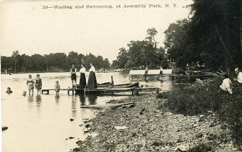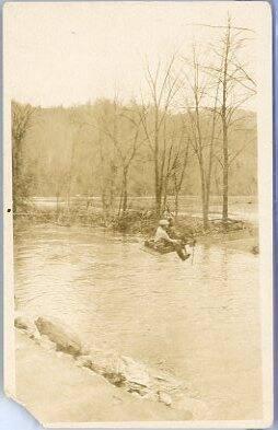 Label TextLinton Park came from a family that was among the first to settle in the wilds of Indiana County, Pennsylvania. He was a businessman and inventor, but primarily a painter best known for painting scenes of his life and region. His most celebrated work is the monumental and nostalgic painting Flax Scutching Bee at the National Gallery of Art in Washington, D.C. The rafting scene exhibited here was one of four which hung in a loggers’ hotel in Burnside, Pennsylvania before 1907. According to family tradition, Park is the figure in shirtsleeves clinging to the raft in the foreground.On View