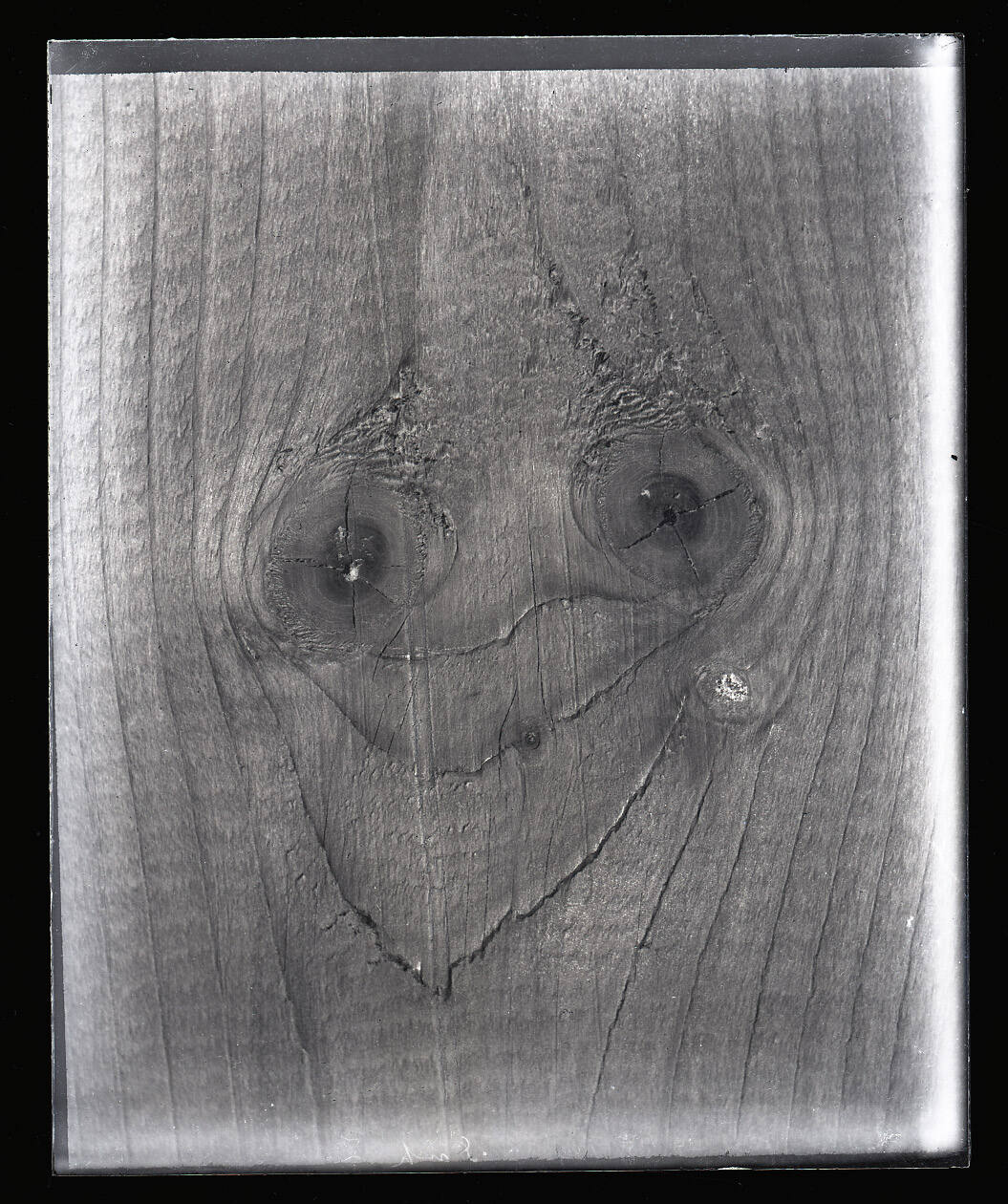 Grotesque Face Formed by Knots and Grain on a Piece of Wood