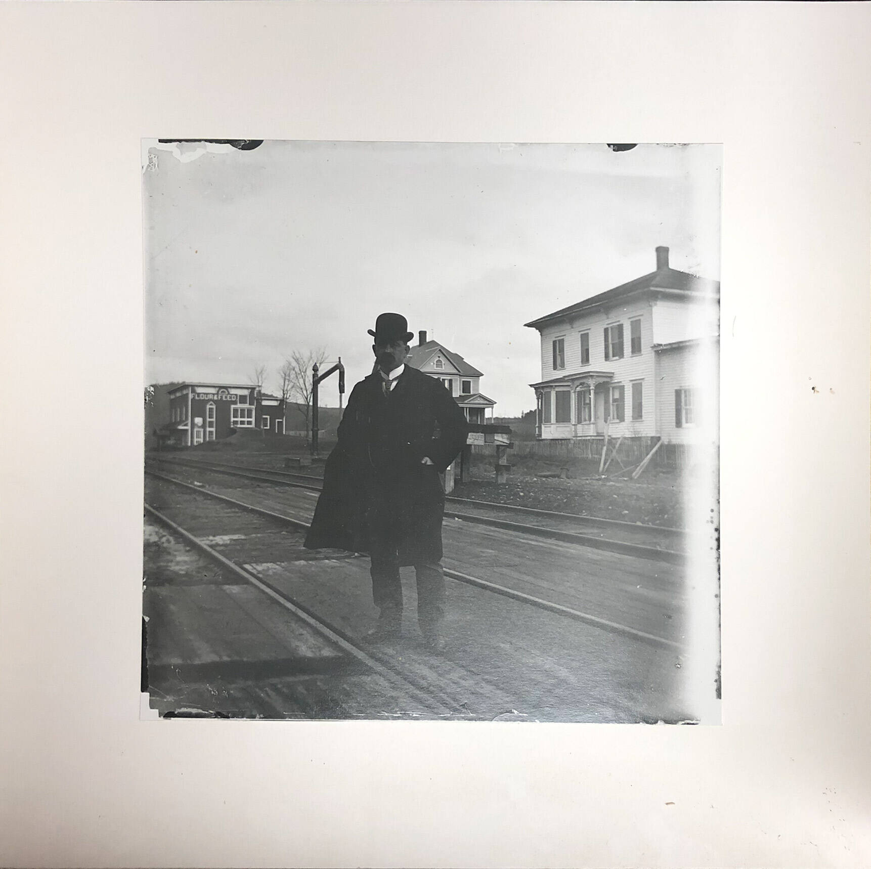 Man Standing on the Rail Road Tracks Intersecting East Main Street Milford, NY