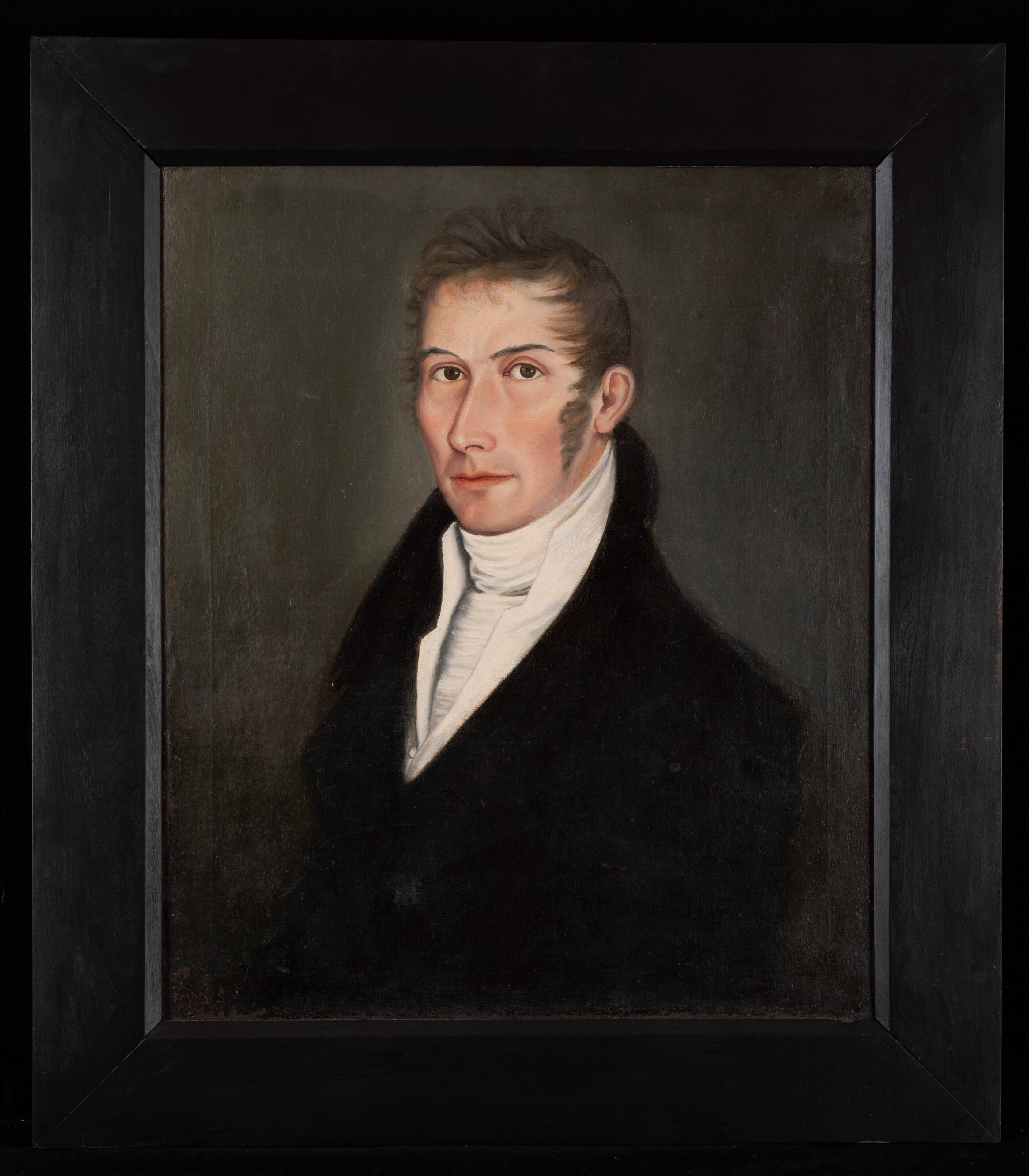 Label TextThe Historical Association’s collection of folk portraits is among its most significant holdings and includes examples by nearly every major 19th-century folk portraitist. In cases where the artist cannot be identified, as in this picture, it is important that the sitter is documented. Elisha Cleaveland Litchfield was born in Connecticut in 1785 and settled on a farm in Delphi Falls, Onondaga County, New York, by 1810. His son (of the same name) married Mary Ann Ten Eyck, an heir to the Century House in Cazenovia, New York. An underrated and overlooked portrait painter from upstate New York, Otis Hovey’s work is distinguished by his telltale wispy locks, pursed lips, and pointy noses. Examples abound, but are rarely recognized.