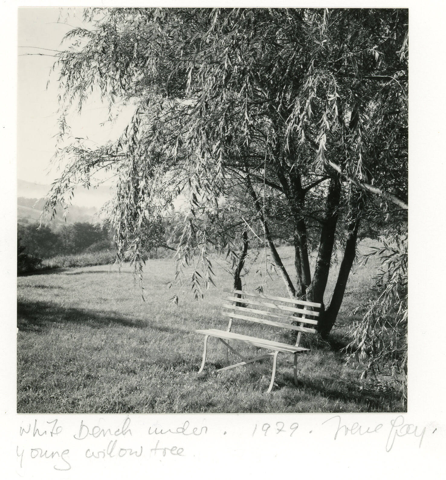 White Bench Under Young Willow Tree