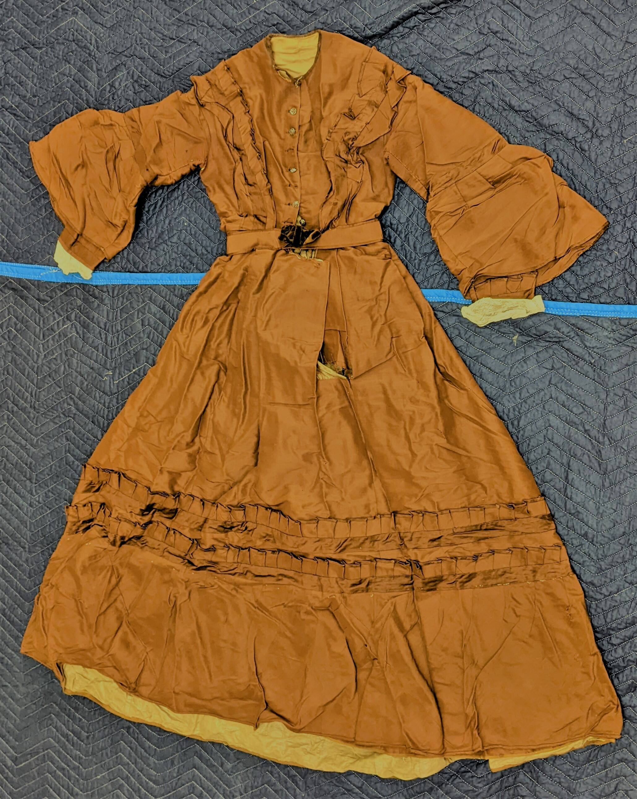 Wool or silk/wool blend, silk velvet, silk satin, cotton lace, and polished cotton