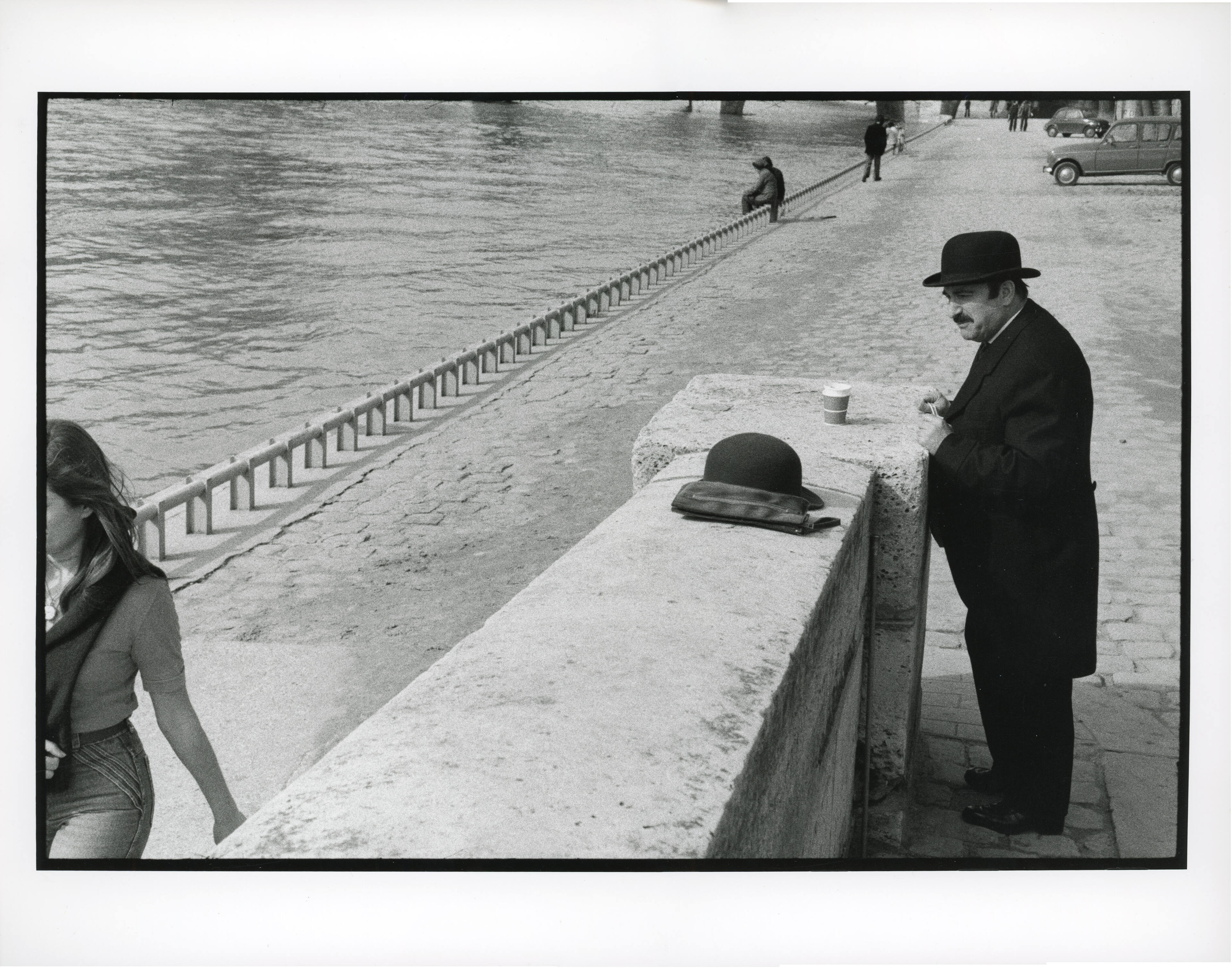 Man in hat watching river, Paris, 1977