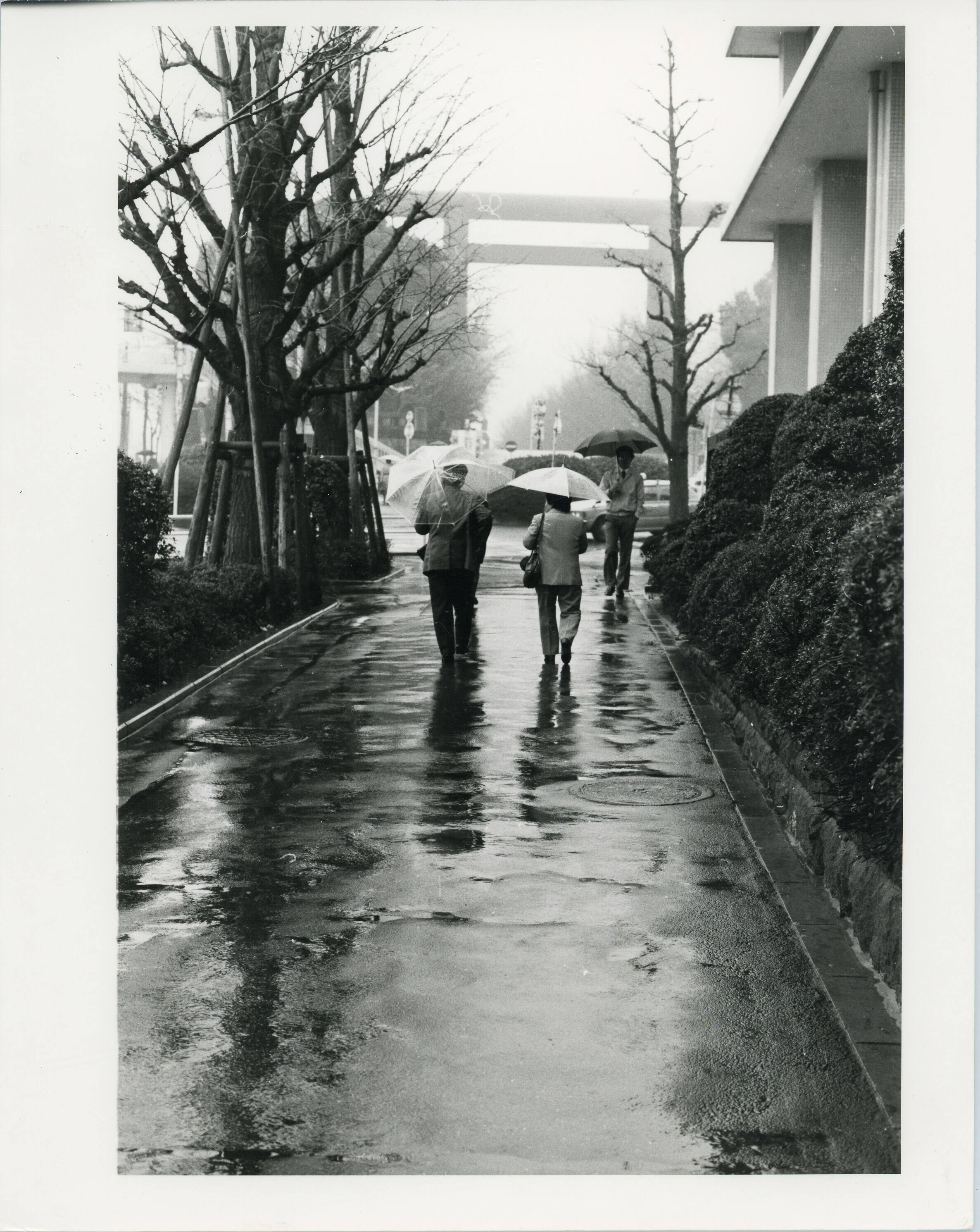 Men Walking with Umbrellas, Japan, ca. 1970s