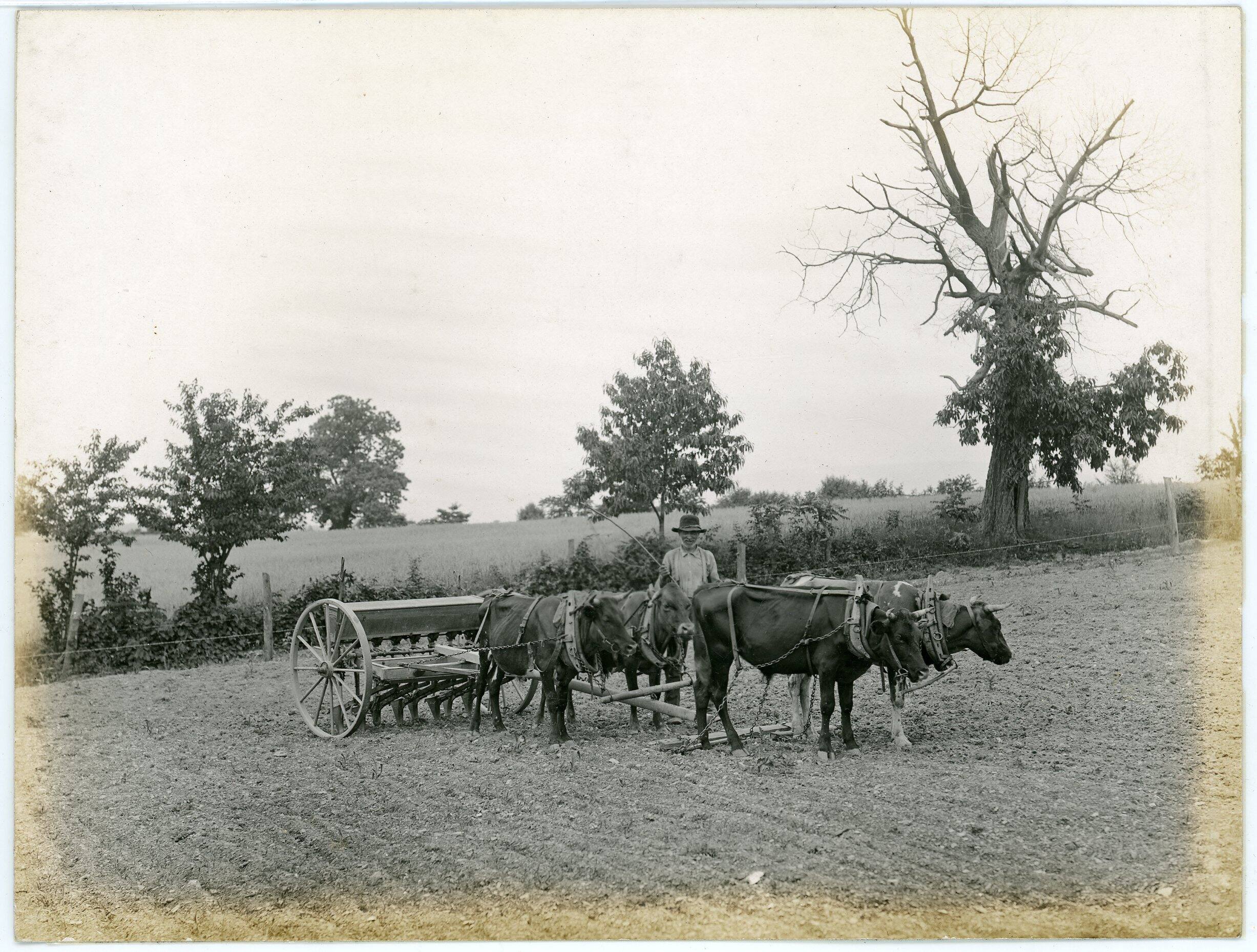 Man with Four Oxen Driven Planter
