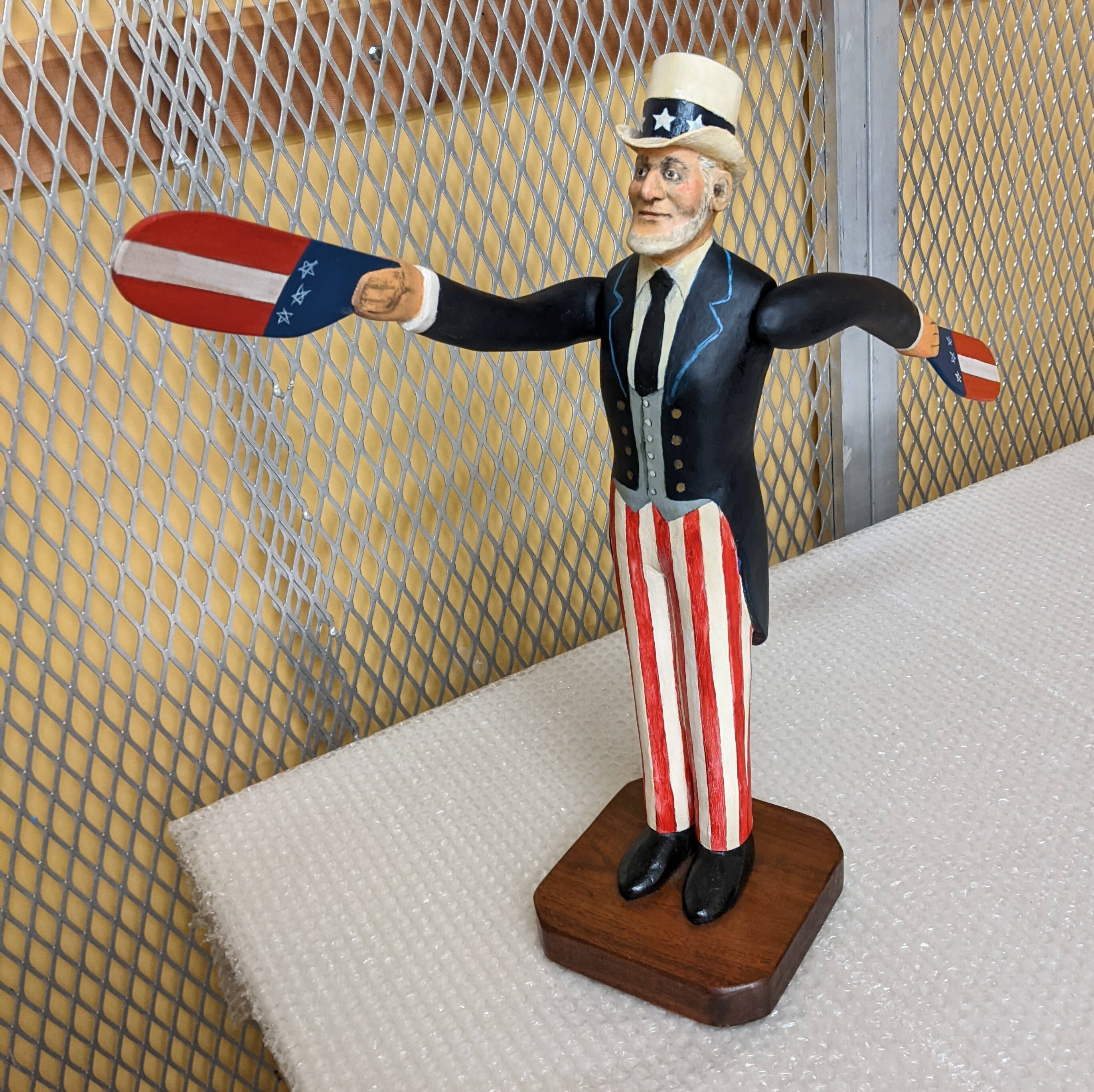 DimensionsUncle Sam: 20 3/8 (H at hat) x 6.125 (W) x 6.125 (D) x 24 (L of wingspan)