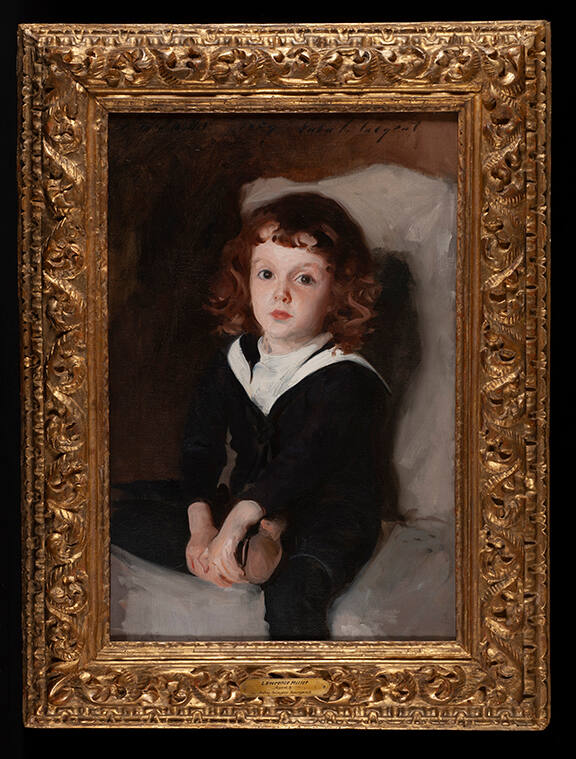The Millets were a prominent New England family. Laurence's father, Frank, was an artist of substantial note, and often painted with Sargent at Broadway. Sargent’s portrait of Laurence is informal, showing the boy at age three, seated with one foot pulled up on his knee. He wears a sailor suit, with his face framed with long curly locks of brown hair. Sargent captures his subject with broken brushwork, eschewing veracity in favor of an impressionistic immediacy. The painting is far looser and more relaxed, demonstrating Sargent’s break from Salon-style studio painting. That this work was a gift from the artist inscribed to Laurence’s mother, Lily, further attests to the intimacy and affection Sargent held for the Millet family. It remains one of Sargent great successes of his early years.