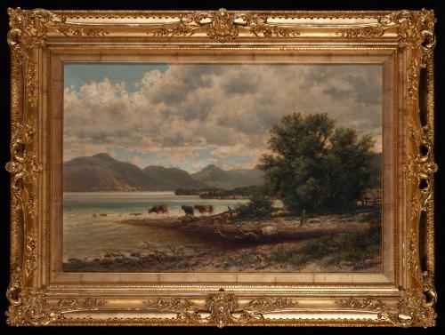 Label TextAs a second-generation member of the Hudson River School, David Johnson experienced artistic success during the second half of the nineteenth century. The style of his rocky landscape scenes tended to coincide with whatever genre the current art market dictated as on trend, with his later works demonstrating a distinctly luminist influence. Johnson was essentially a self-taught artist up until 1845, but at the age of eighteen, he opted to enroll at the National Academy of Design. Under the instruction of mentors including John Frederick Kensett and Jasper Francis Cropsey, he began to paint landscapes of his native New York with a level of skill which enabled him to ride on the coattails of their success.Buck Mountain sits on the east side of Lake George, at the base of the Adirondack Mountains in Upstate New York. Nicknamed the Queen of American Lakes, Lake George became a popular site for many Hudson River School painters, including Johnson’s mentor, Kensett. David Johnson painted numerous depictions of the serene topography from various vantage points. Not only did the location offer majestic views, but it also held historical importance, as it was the site of several military campaigns during the French and Indian War.