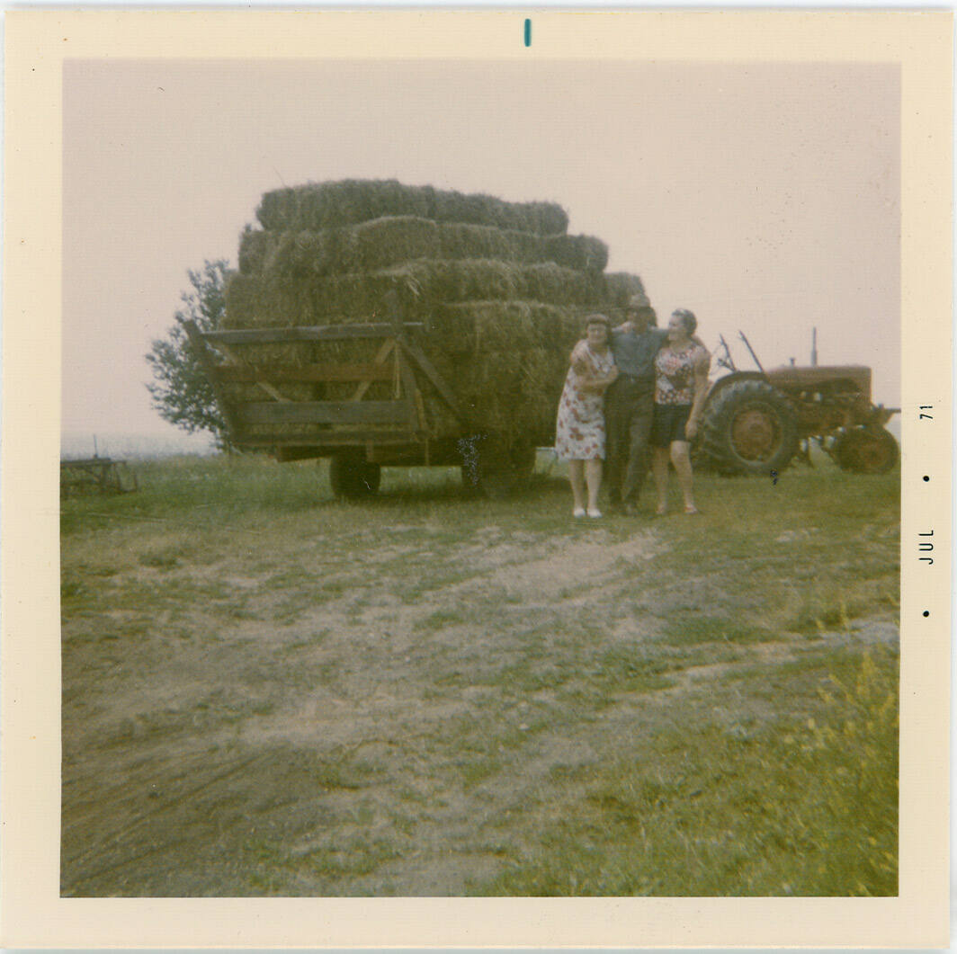 Two Women and a Man by the Wagon