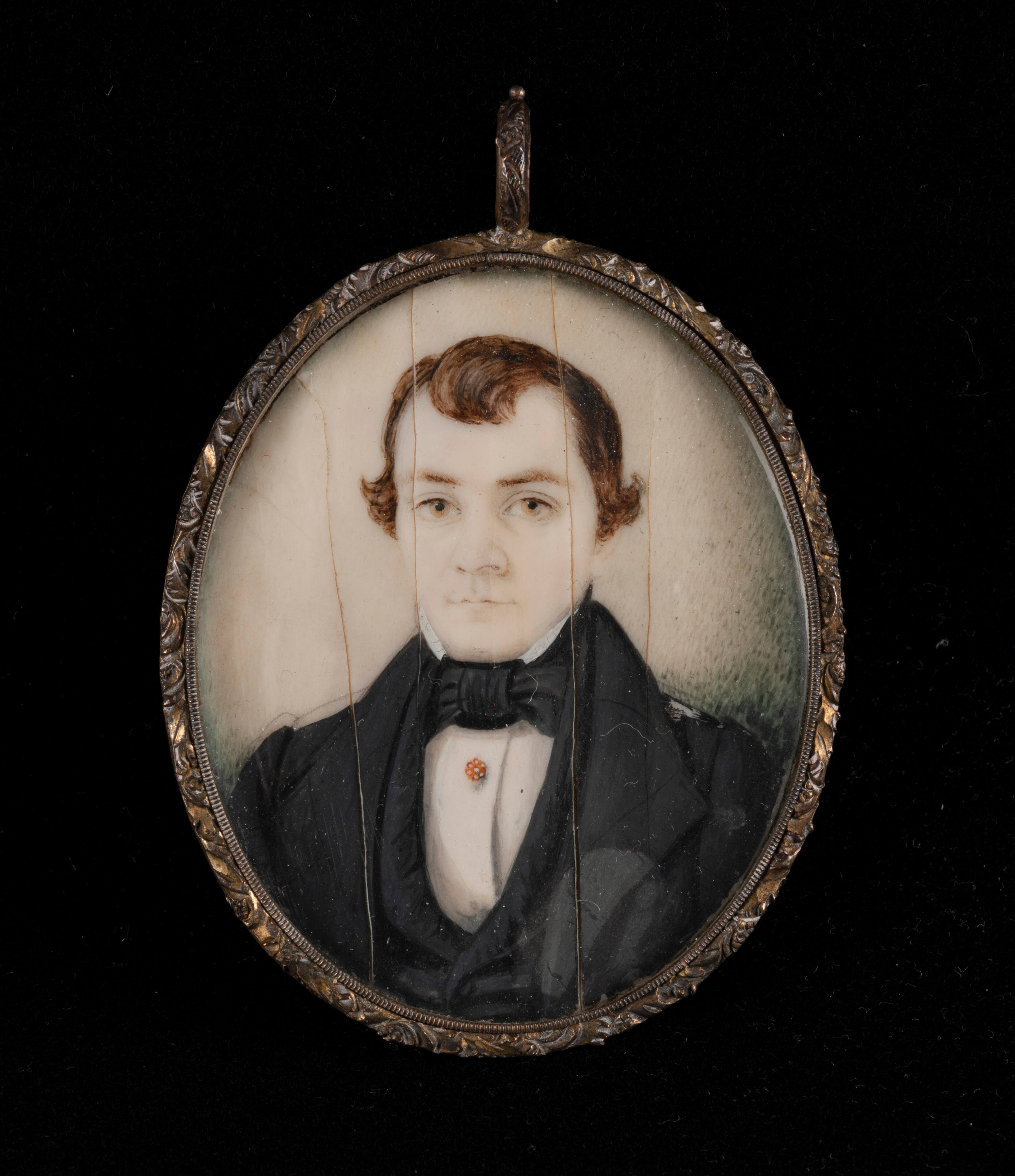Although the artist is known primarily for his portrait work in watercolor on paper and oil on canvas, Henry Walton also painted portrait miniatures in oil on ivory. Thus far, six examples of these have been found; two depict subjects from Ithaca, New York, and three are dated 1840.