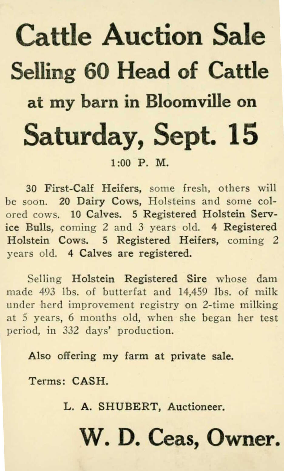 Cattle Auction Sale Advertisement