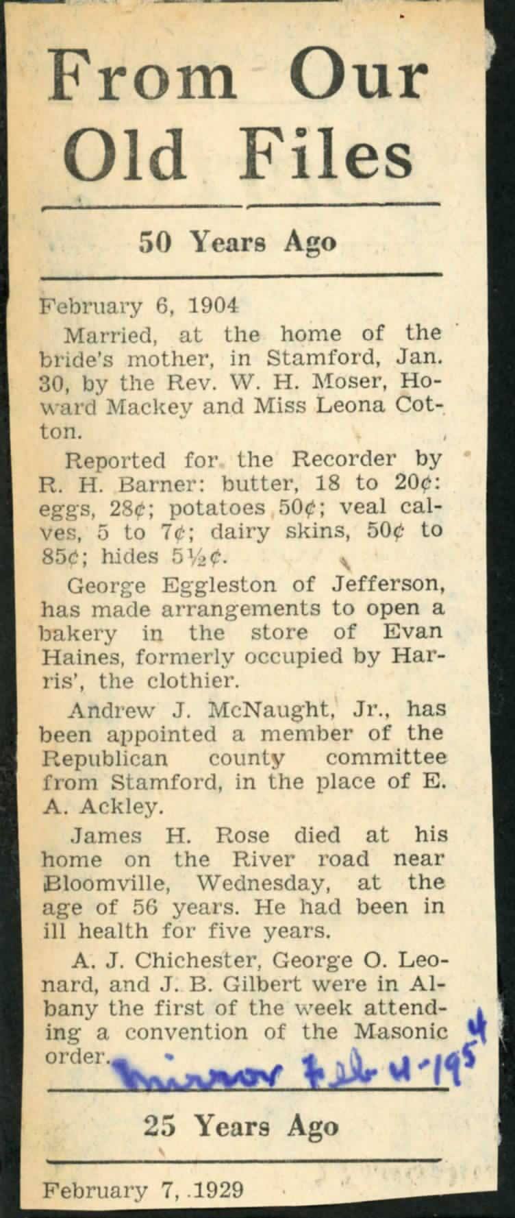 From Our Old Files News Clipping