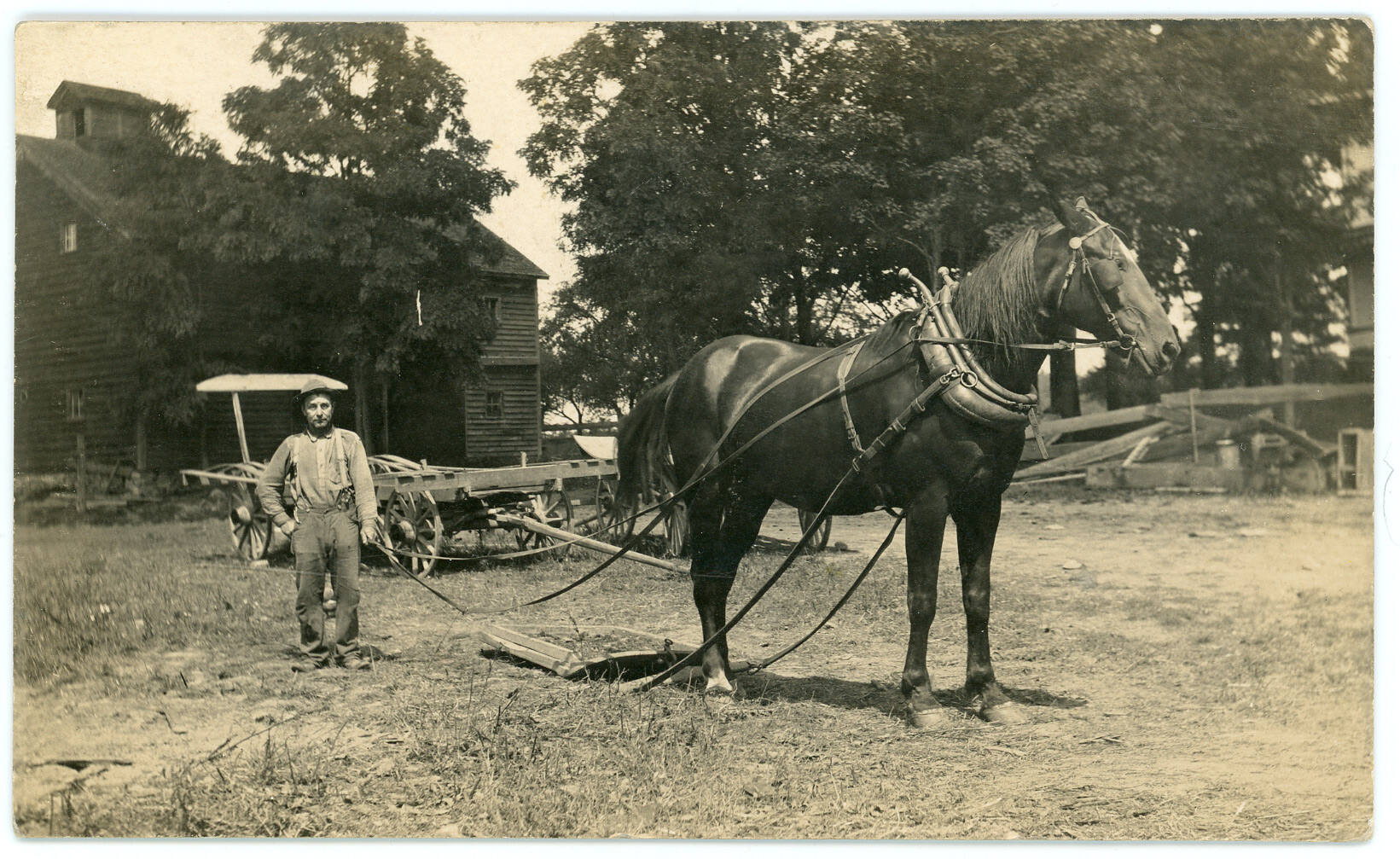 Farmer with Horse-Drawn Farm Equipment
