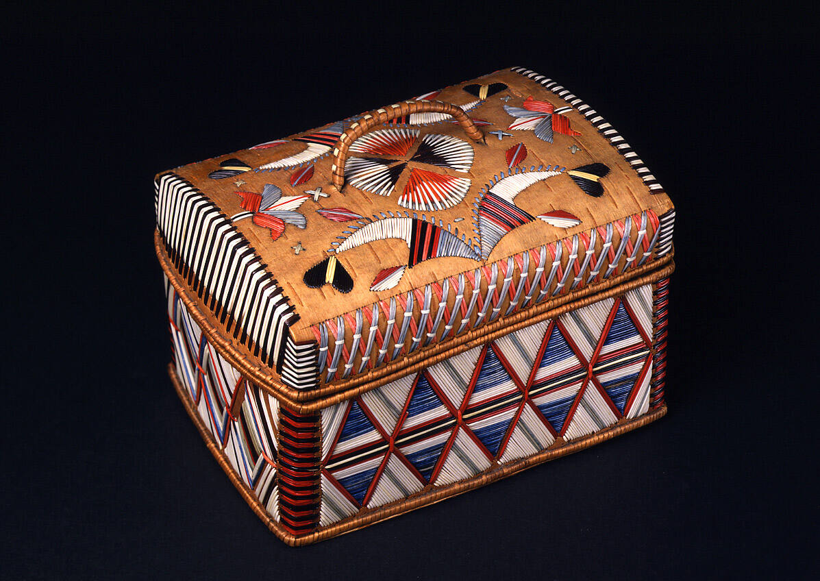 Label TextStarting in the early 1800s, birchbark souvenirs decorated with colored porcupine quills were being produced in several Ottawa and Ojibwa settlements around Georgian Bay, Manitoulin Island, and even Northern Michigan. (c.f. Skinner 1921, pl.LXXIX-C; Hodge, 1973, p.83, fig.374; McCord Museum of Canadian History cat. no. M-2126; Graham 1983, p.33, fig.17). The production of these souvenirs had become an important source of cash, enabling the Native people to survive in a rapidly changing world. Most of the Elgin examples seem to have came from the Parry Sound region on Georgian Bay.