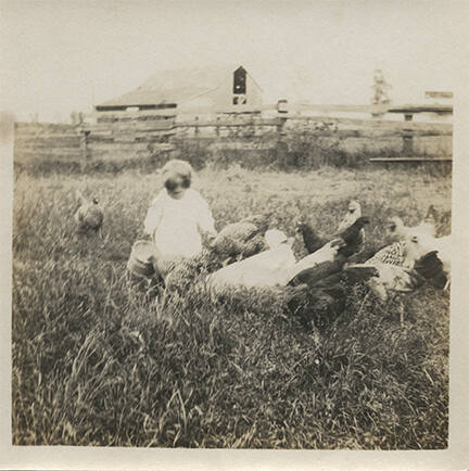 Child with Flock of Chickens