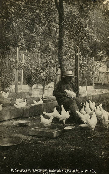 A Shaker Brother with a Brood of Chickens