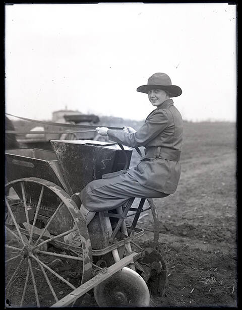Woman on a Horse Drawn Seeder Machine
