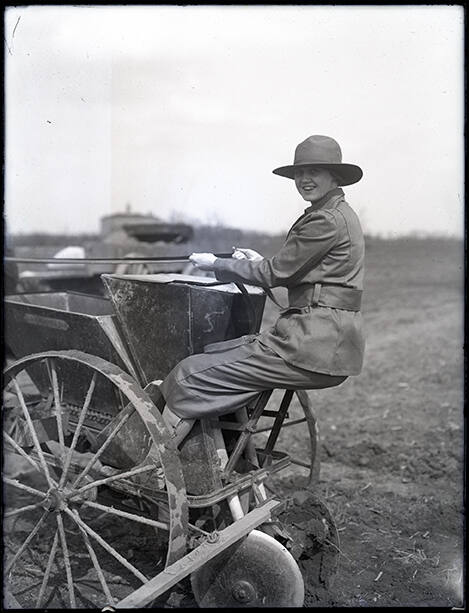 Woman on a Horse Drawn Seeder Machine