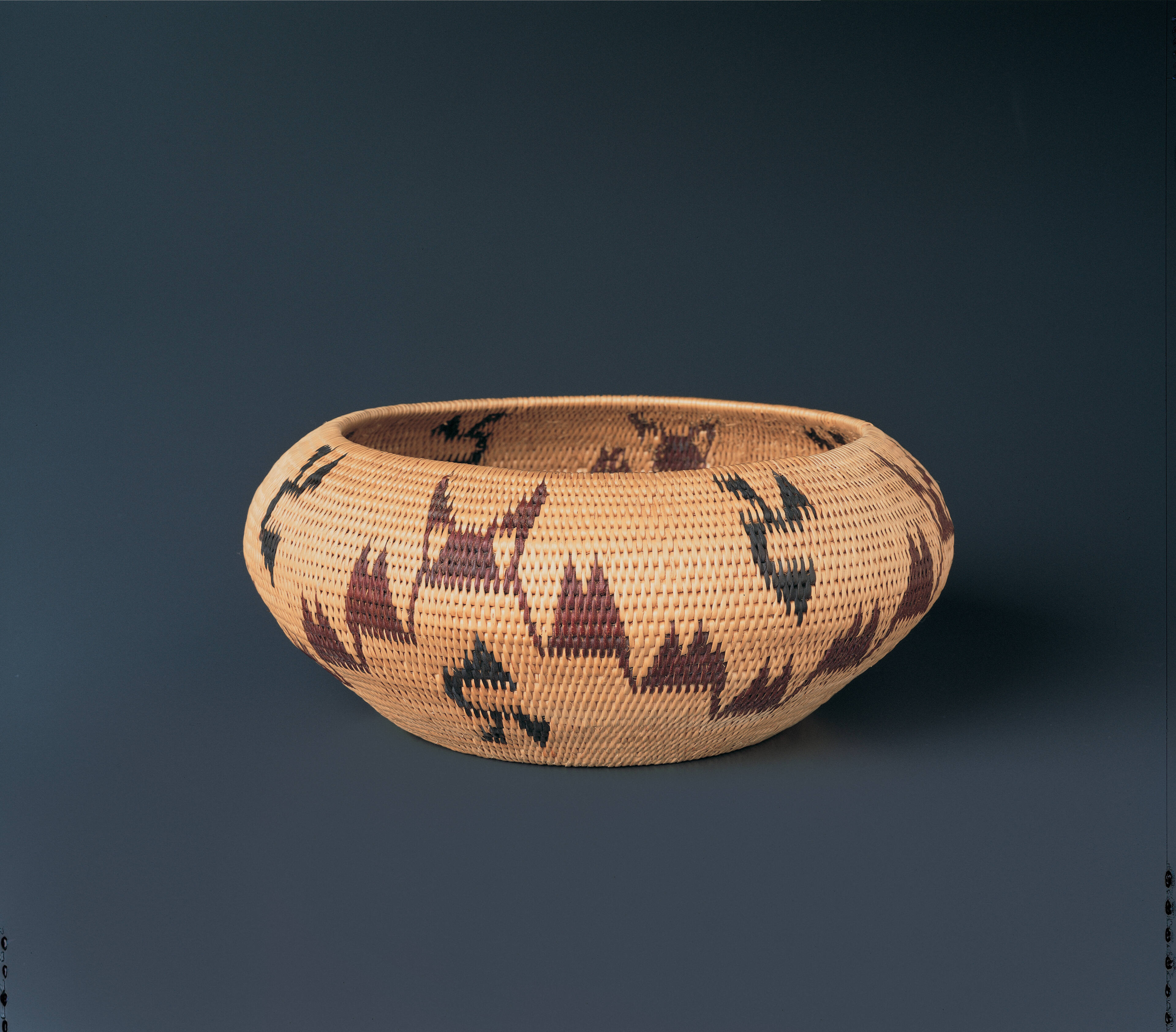 Label TextMaggie Mayo James adapted classic Washoe basket forms to create her unique style and this basket illustrates several of her innovative features. She emphasized a broad shoulder, the widest part of the basket, by weaving a flat top and small base, giving these baskets an almost double saucer shape. Another aspect of her approach was to create a diagonal orientation in her designs. Maggie Mayo James sold her baskets directly to tourists and collectors at Lake Tahoe when there was a great appreciation for the artistry of Washoe baskets in the 1910s and 1920s. James attained forty stitches per inch in some of her finest baskets, displaying the most highly accomplished technical skills of all Washoe basket weavers.ProvenanceArrowsmith; Elsa Steiner Huff (EH31), Portersville, Pennsylvania; Gunter R. and Doris Schmitz (B125), Buffalo, New York
