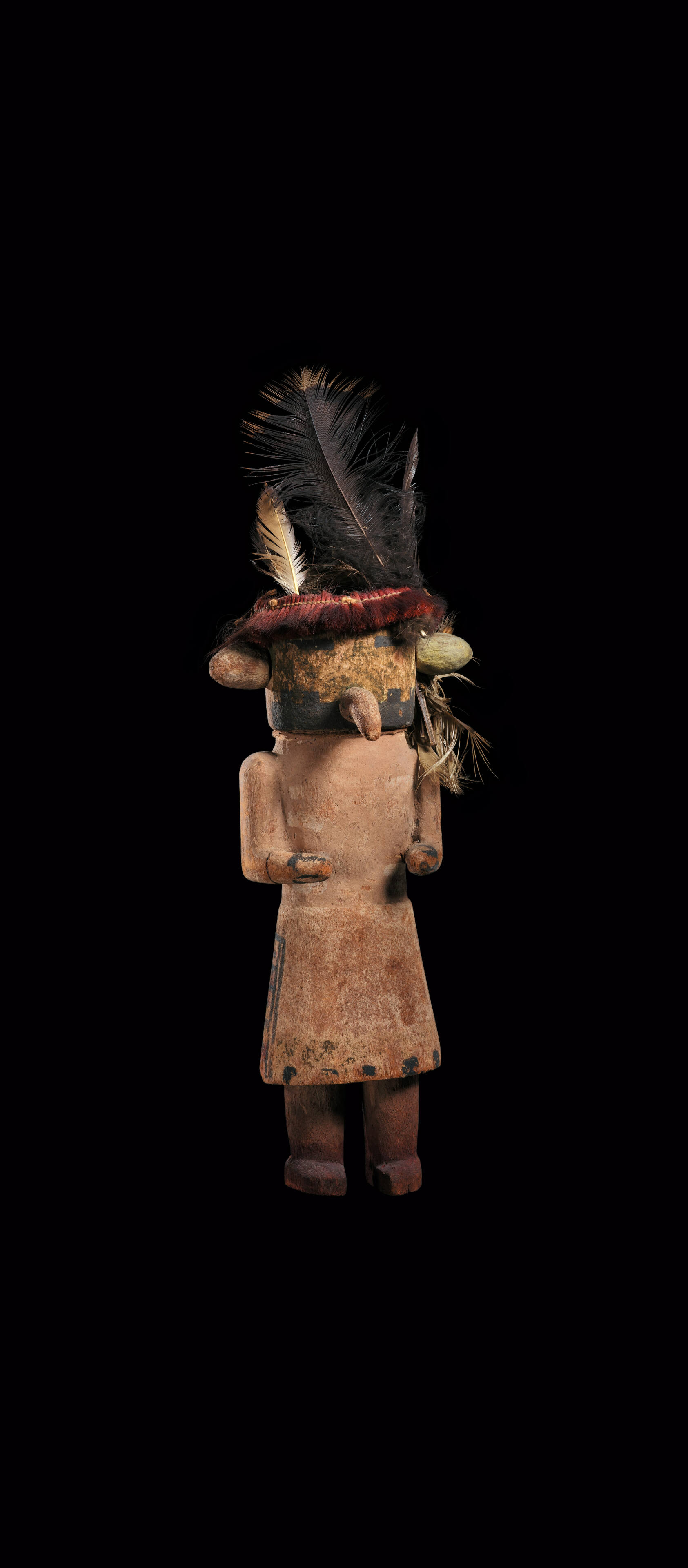 Label TextThere are three manifestations of kachinas. Most important are the spirit beings who reside in and around the Hopi villages from late December until early July when they return to the spirit world. Another occurs when their spiritual essence is transformed into human dancers who dress as kachinas at major ceremonies. The third is the carved wooden kachina figure (tithu) that is given to a young girl as part of her instruction on Hopi spirituality. There are many different kachinas, often associated with life-giving spirits such as rain, animals, plants, and ancestors. Each kachina’s identity is conveyed through clothing and adornment.ProvenanceGift of Pierre and Maria-Gaetana Matisse, New York City