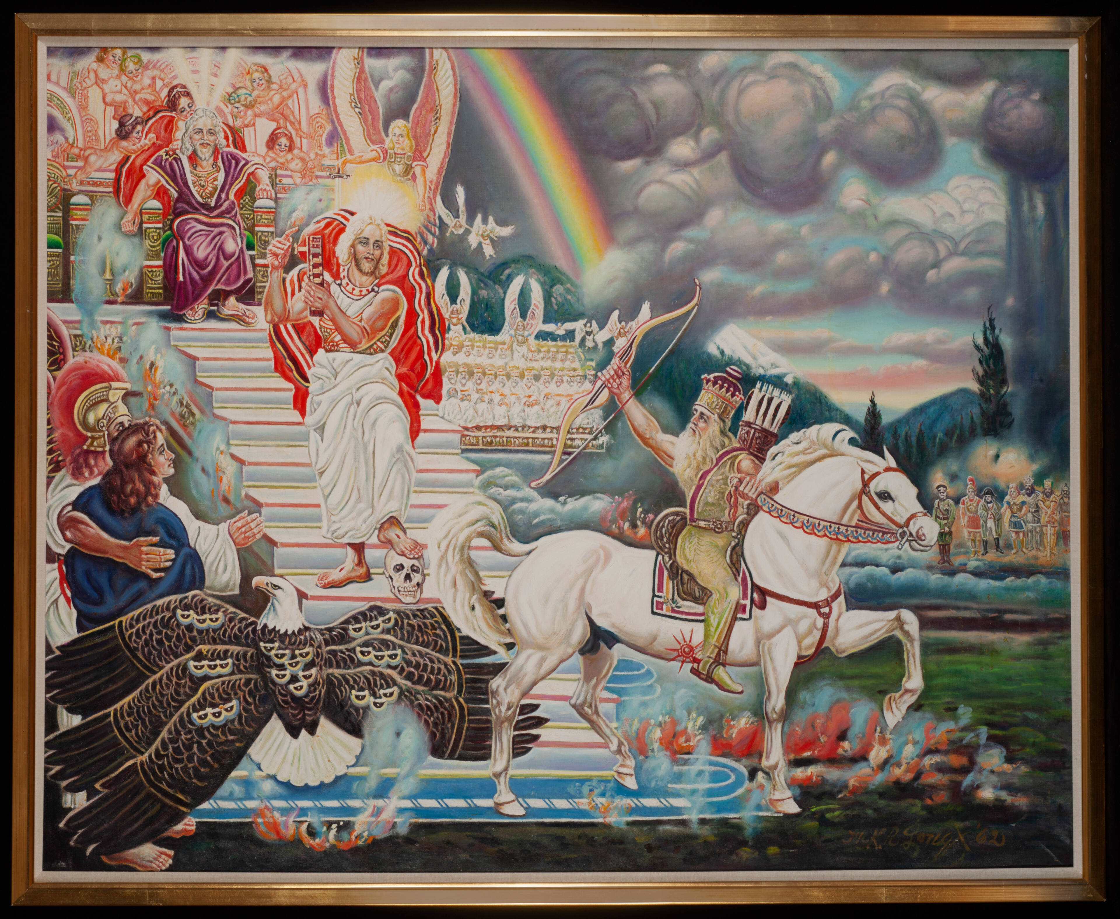 Label TextMcKendree Robbins enjoyed a childhood in a North Carolina home filled with music, art, and spirited conversation. He was encouraged to pursue his artistic career and traveled widely in Europe in the 19-teens, absorbing the knowledge of the rapidly changing art world.After returning home and starting a family, Robbins felt the call to the ministry in 1922 and became a Presbyterian minister and converted to the Baptist faith in 1935. His religious views grew conservative and Robbins became enamored with the Apocalypse. He eagerly awaited its arrival and preached against the excesses of modern society in the face of the coming judgment of good and evil.