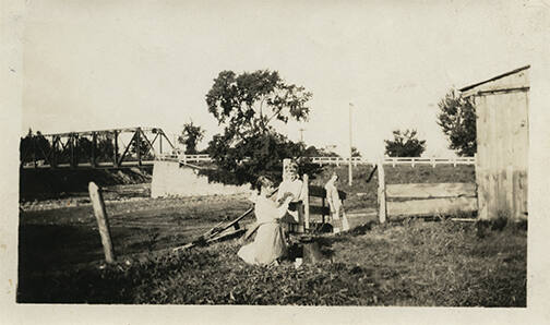 Three Girls Outdoors near a Barn