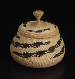 Elizabeth Hickox baskets were marketed by Grace Nicholson of Pasadena, an art dealer specializing in American Indian basketry. Hickox's departure from traditional California basketry resulted in aesthetically distinctive and technically superb baskets. They sometimes approach 800 stitches per inch and were so demanding that only her daughter, Louise, was able to perfect the technique after years of instruction. These two baskets exemplify the elegant design and meticulous workmanship of these master weavers.Exhibition History"Art of the American Indian: The Thaw Collection," The Cleveland Museum of Art, Cleveland, OH, March 2, 2010 - May 30, 2010; Minneapolis Museum of Art, Minneapolis, MN, October 24, 2010 - January 9, 2011; Dallas Museum of Art, Dallas, TX, April 24, 2011 - September 23, 2011; Indianapolis Museum of Art, Indianapolis, IN, December 4, 2011 - February 12, 2012.