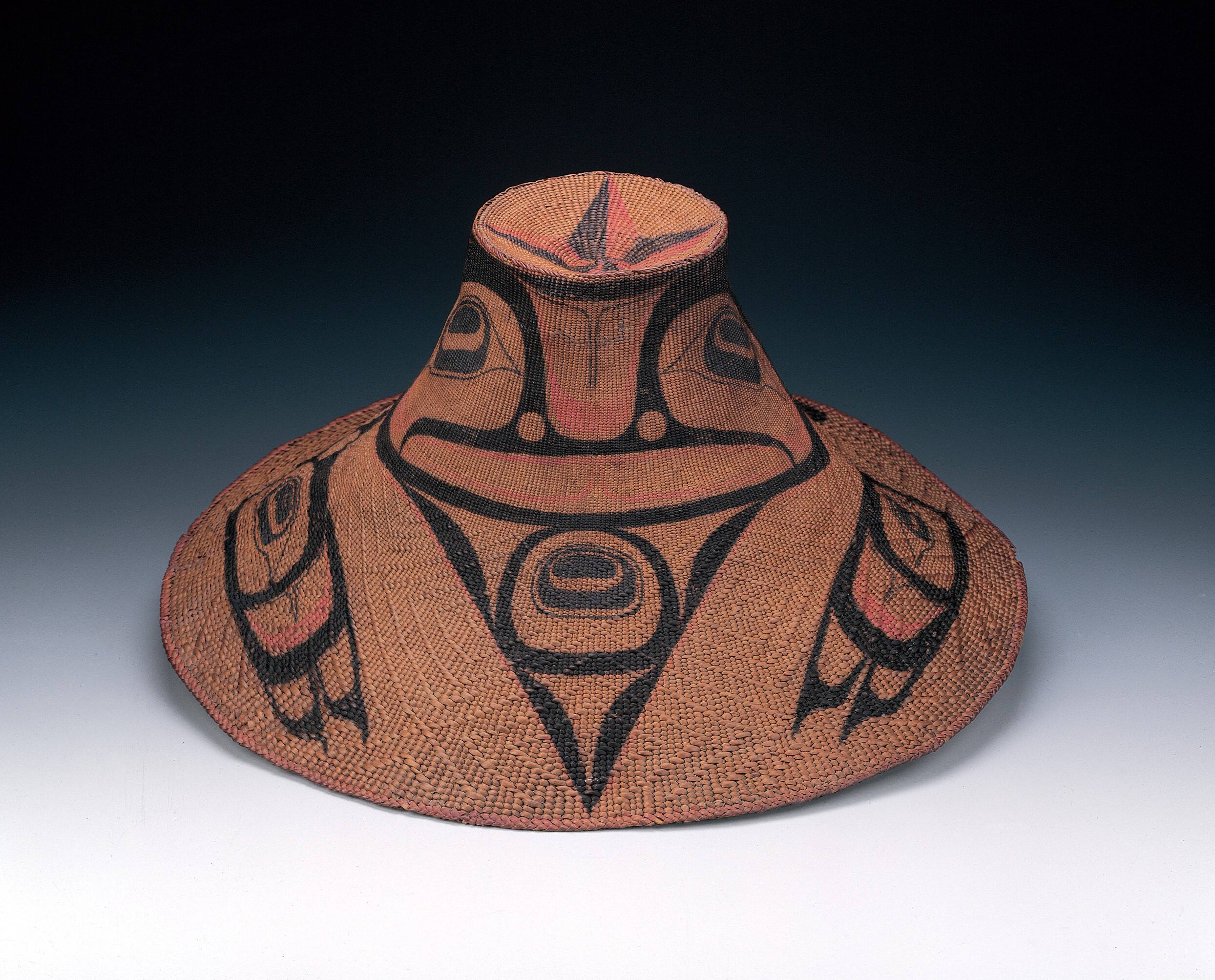 Label TextCharles and Isabella Edenshaw are among the most highly respected Haida artists of the 19th century. This hat, woven by Isabella and painted by her husband Charles, is notable for its exceptional weaving, graceful shape, and beautiful imagery. Painted and woven hats were highly valued and respected clan heirlooms, but were also made for the collectors’ market.Exhibition History"Art of the American Indian: The Thaw Collection," The Cleveland Museum of Art, Cleveland, OH, March 2, 2010 - May 30, 2010; Minneapolis Museum of Art, Minneapolis, MN, October 24, 2010 - January 9, 2011; Dallas Museum of Art, Dallas, TX, April 24, 2011 - September 23, 2011; Indianapolis Museum of Art, Indianapolis, IN, December 4, 2011 - February 12, 2012.
