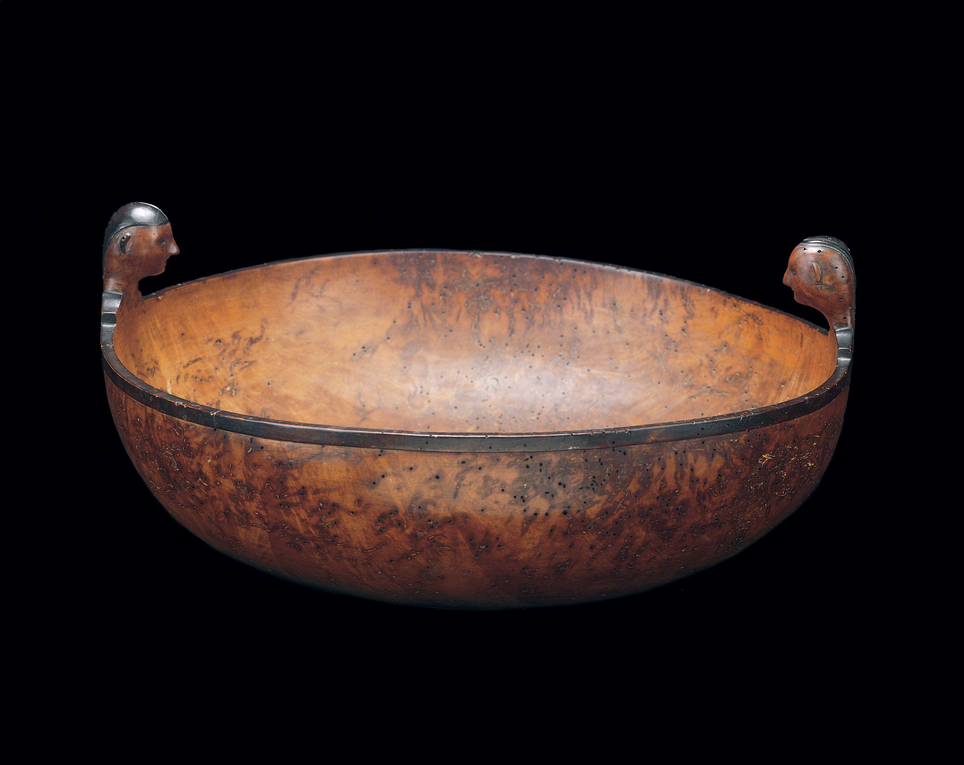 Label TextThe celebratory nature of feasting was honored in the gracefully carved bowls, ladles and spoons used at feasts. Two spirit effigies preside over this feast bowl. Their distinct features distinguish them as a male and a female. Both have black hair and eyes, slender necks, and small squared shoulders. The male wears a warrior’s roached haircut and has a rounder face than the female. The rim highlighted in black pigment encircles and connects the two effigies.Exhibition History"Art of the American Indian: The Thaw Collection," The Cleveland Museum of Art, Cleveland, OH, March 2, 2010 - May 30, 2010; Minneapolis Museum of Art, Minneapolis, MN, October 24, 2010 - January 9, 2011; Dallas Museum of Art, Dallas, TX, April 24, 2011 - September 23, 2011; Indianapolis Museum of Art, Indianapolis, IN, December 4, 2011 - February 12, 2012.