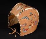 Label TextThis baby bonnet may have been given as a presentation piece to Lady Elgin in recognition of her young son. It likely impressed her for its elaborately quilled floral imagery, but it would not have been practical for actual use. This quilled baby bonnet is the only one known of its kind.Exhibition History"Art of This Land," National Gallery of Canada, Ottawa, Ontario, Canada, February 1, 2009 - April 1, 2011.