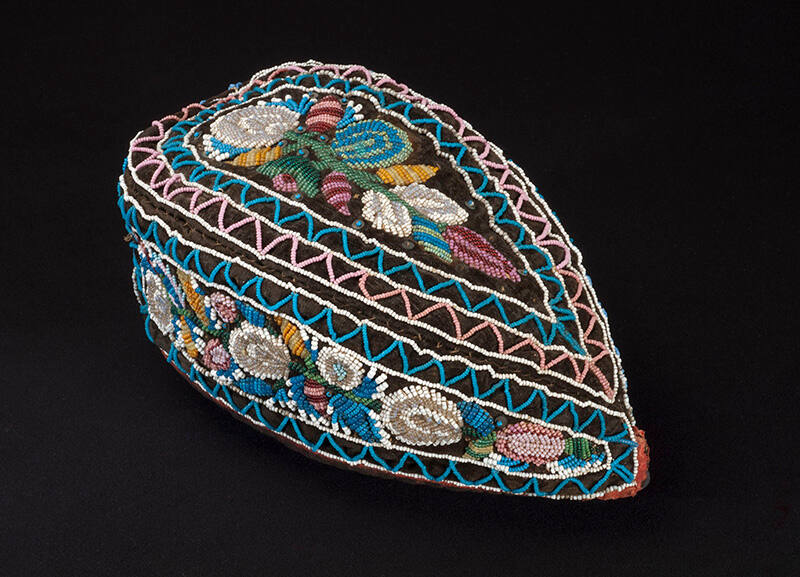 Label TextThe British Army in Canada after the French Indian War (1754-63) included the Scottish Glengarry Regiment whose dress uniform was distinguished by this unique form of cap. Native women beaded hats such as this one and sold them to tourists and visitors as souvenirs.Exhibition History"Life on a String: 35 Centuries of the Glass Bead," Corning Museum of Glass, Corning, NY, May 18, 2013 - January 5, 2014.