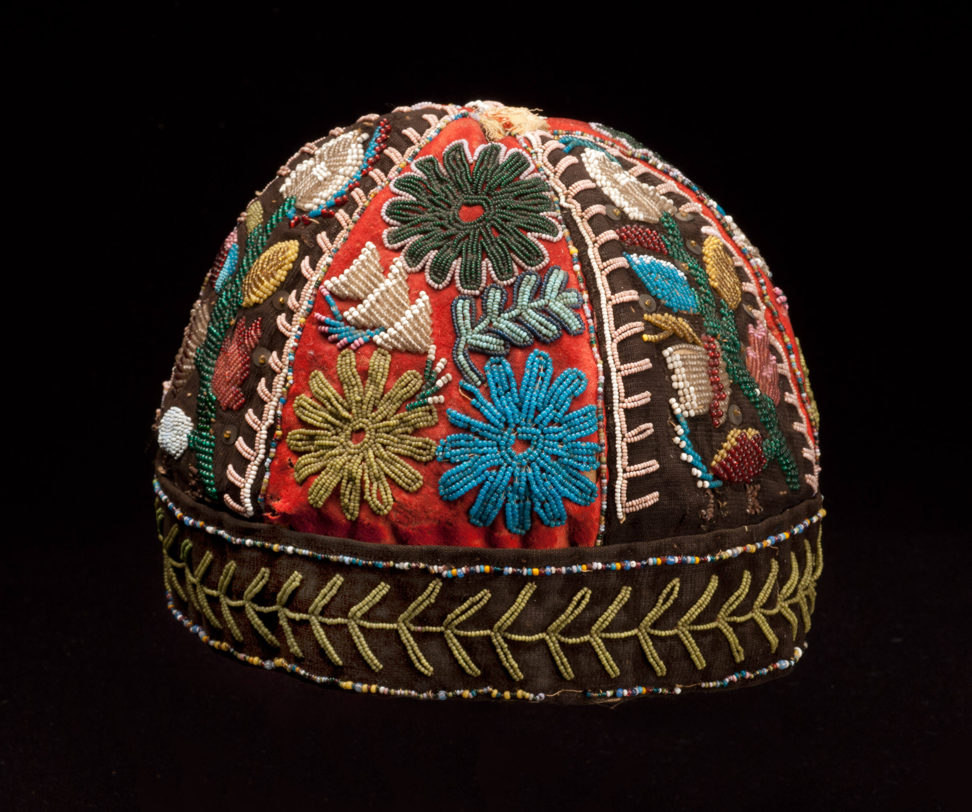 Label TextThe Haudenosaunee are well known for their elaborate beadwork. This vibrant hat known as a “Gustowa” has a stylized floral pattern.Exhibition History"Floral Journey: Native North American Flower Beadwork," Autry National Center of the American West, Los Angeles, CA, February 18, 2014 - May 11, 2015.
